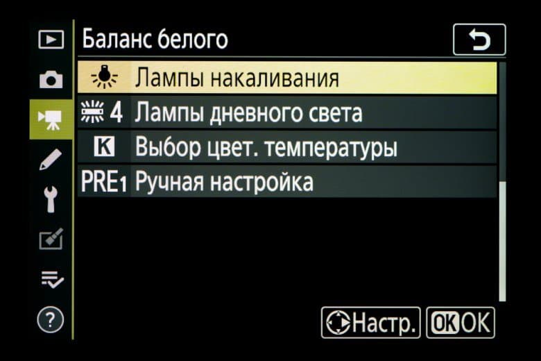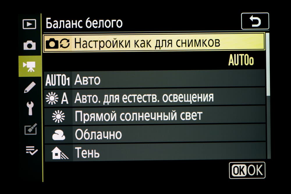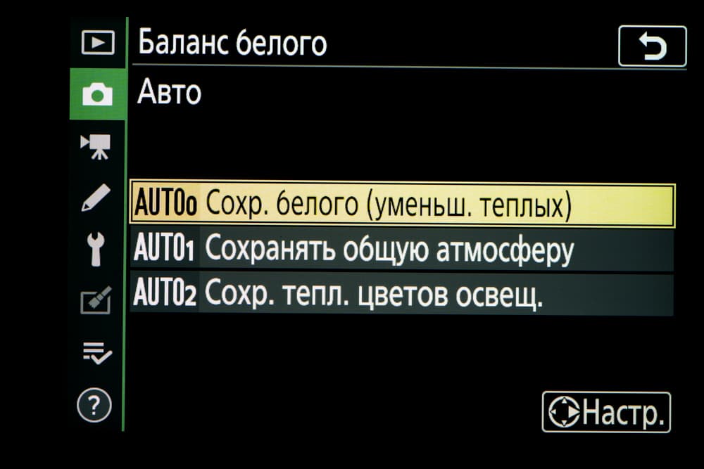 - автоматический баланс белого (АББ).