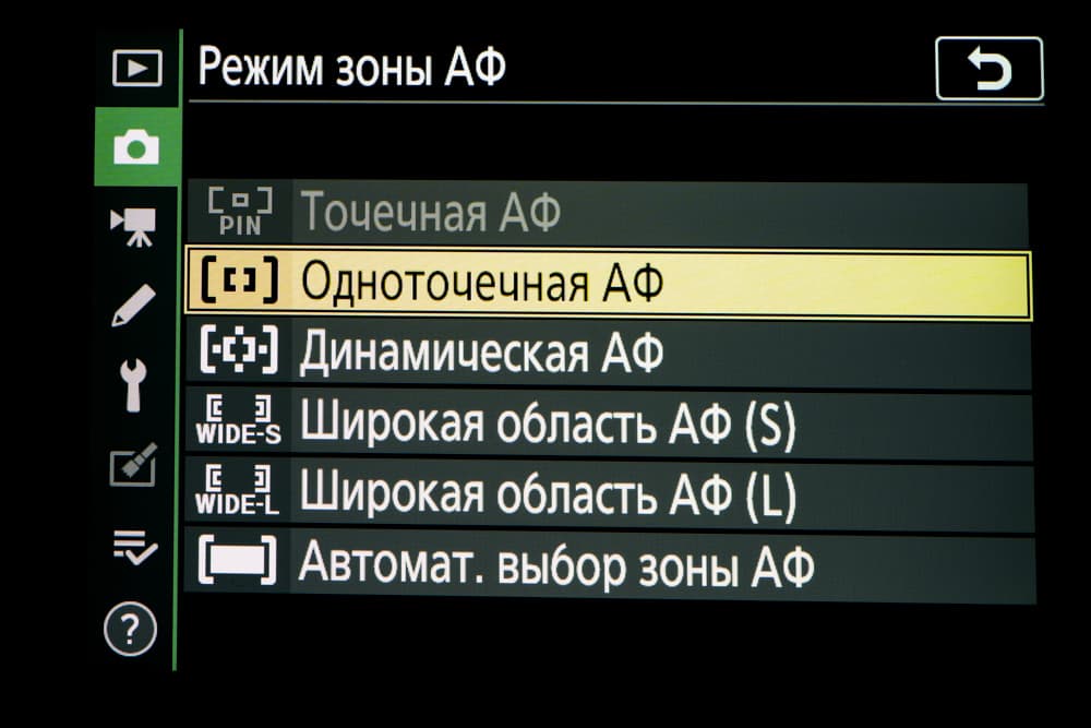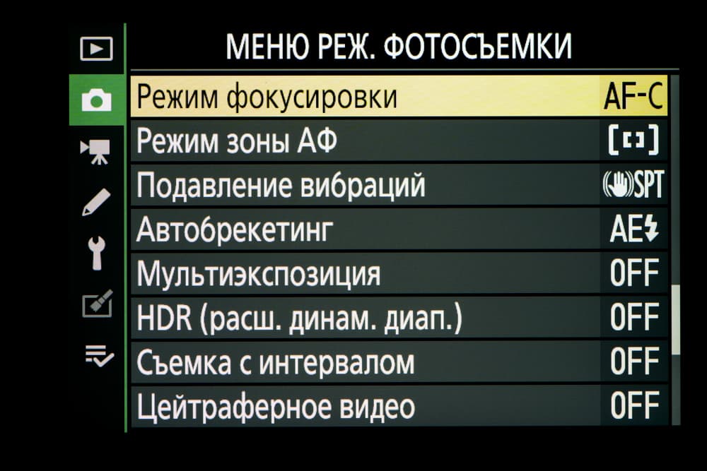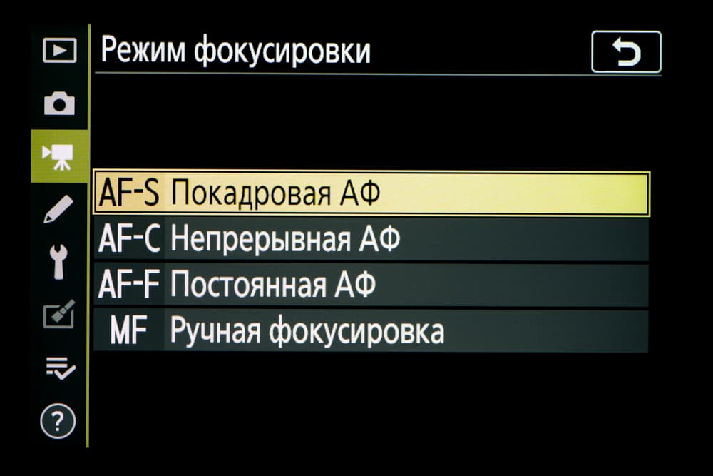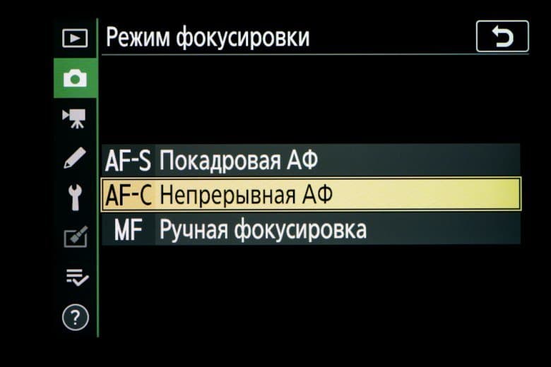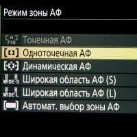 - однокадровая или следящая автоматическая фокусировка (в зависимости от динамики сцены),