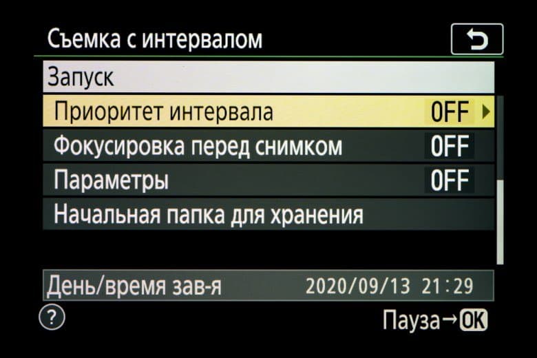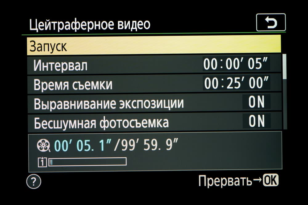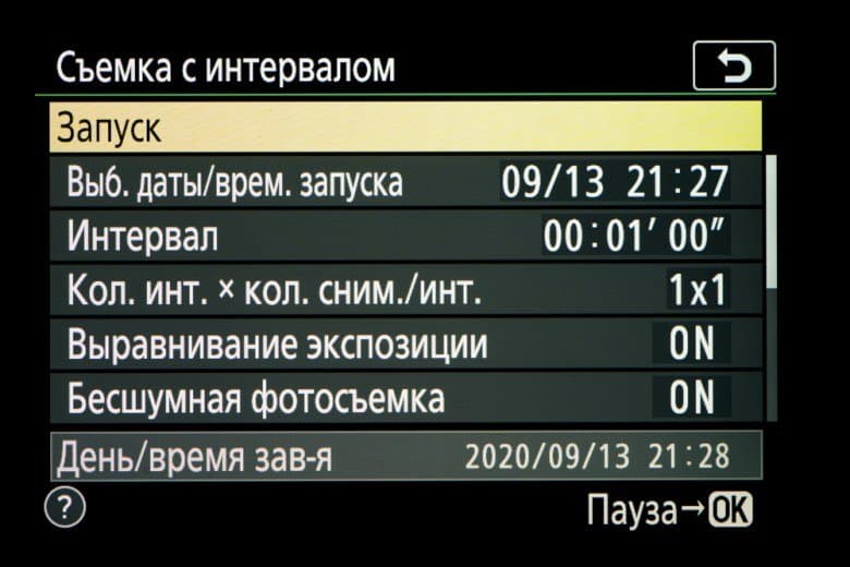 | Цейтраферная съемка | есть (установка длительности интервала, количества снимков, времени начала съемки) |