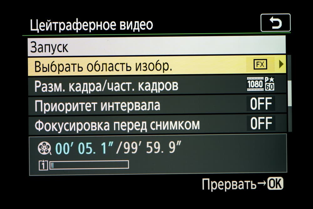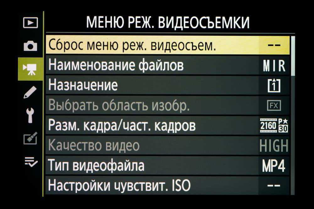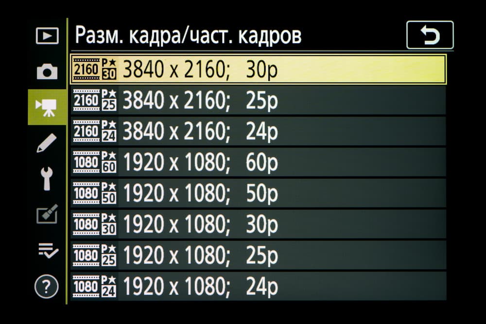 Nikon Z5 позволяет записывать видео в стандарте UHD 4K (3840 × 2160 с прогрессивным сканированием) при 30 кадрах/с. При этом используется лишь фрагмент изображения, формируемого сенсором, и масштабирование исходной картинки происходит с коэффициентом 1,7.