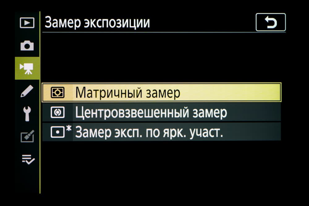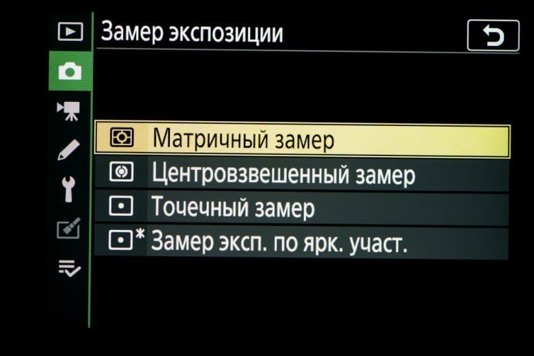 - центрально-взвешенный замер экспозиции,