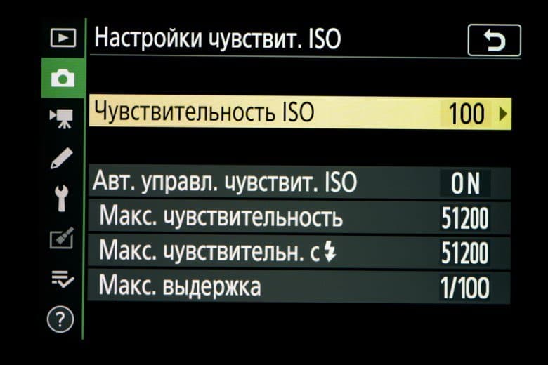 - Эквивалентная светочувствительность ISO 100—51200 (расширение до ISO 50—102400)