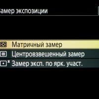 | Автоэкспонометрия (АЭ) | TTL; экспозамеры: матричный, центровзвешенный, точечный, по зонам максимальной яркости |