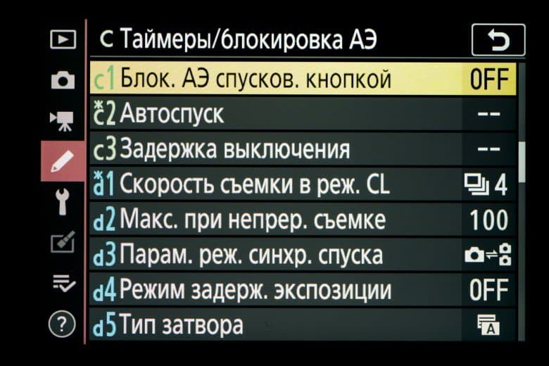 | Доступные значения выдержки | от 1/8000 с до 30 с с шагом ⅓ или ½ EV, выдержка от руки, выдержка по времени |