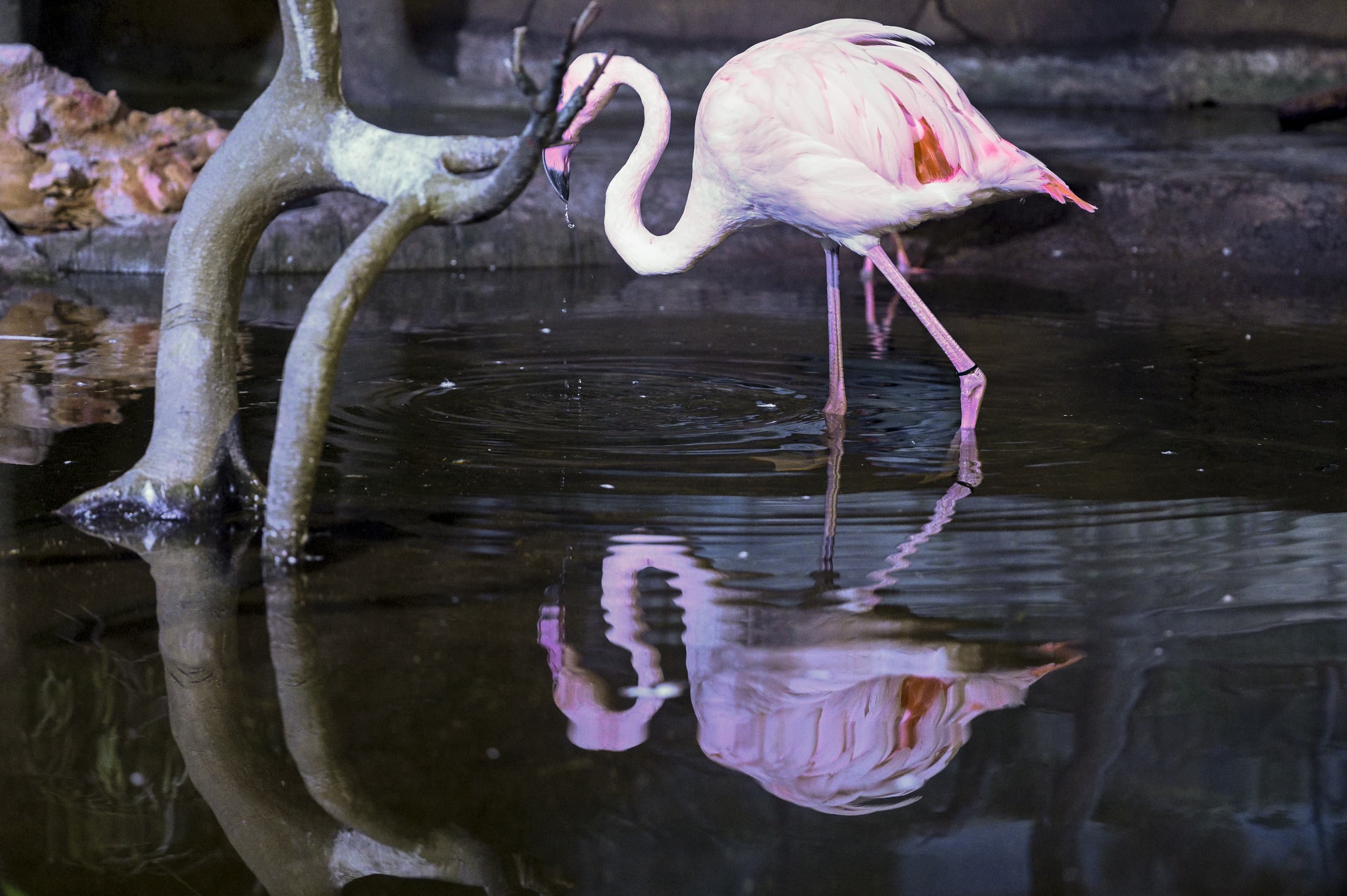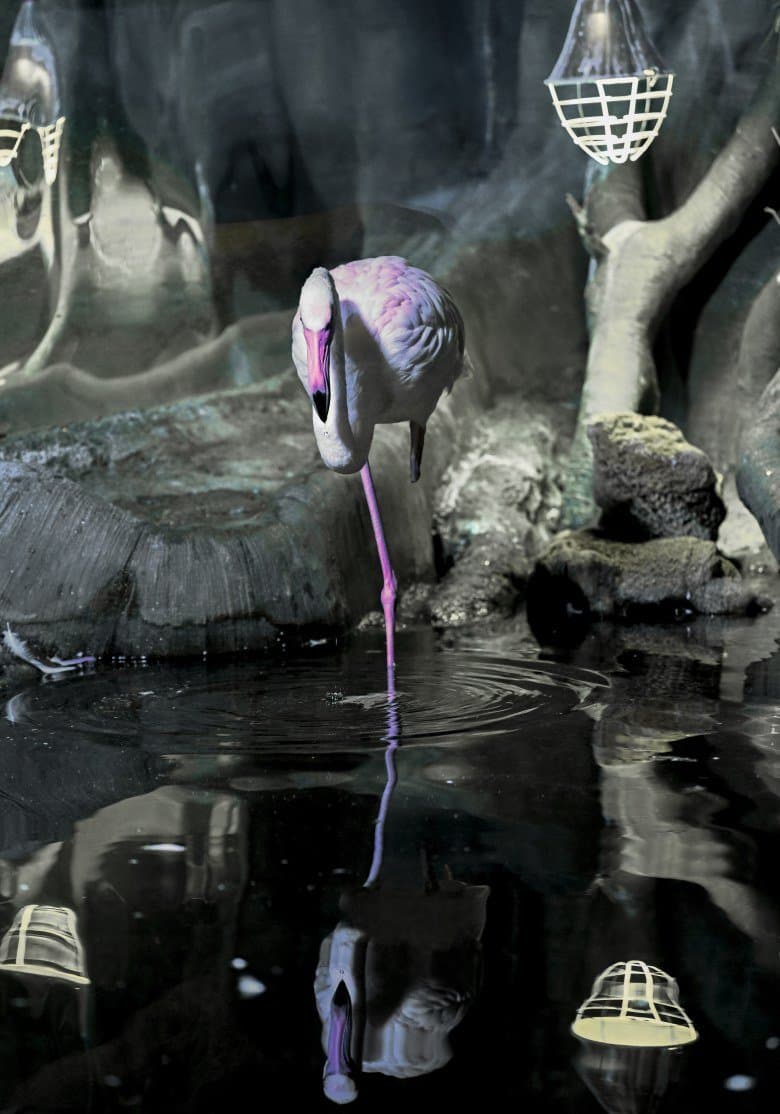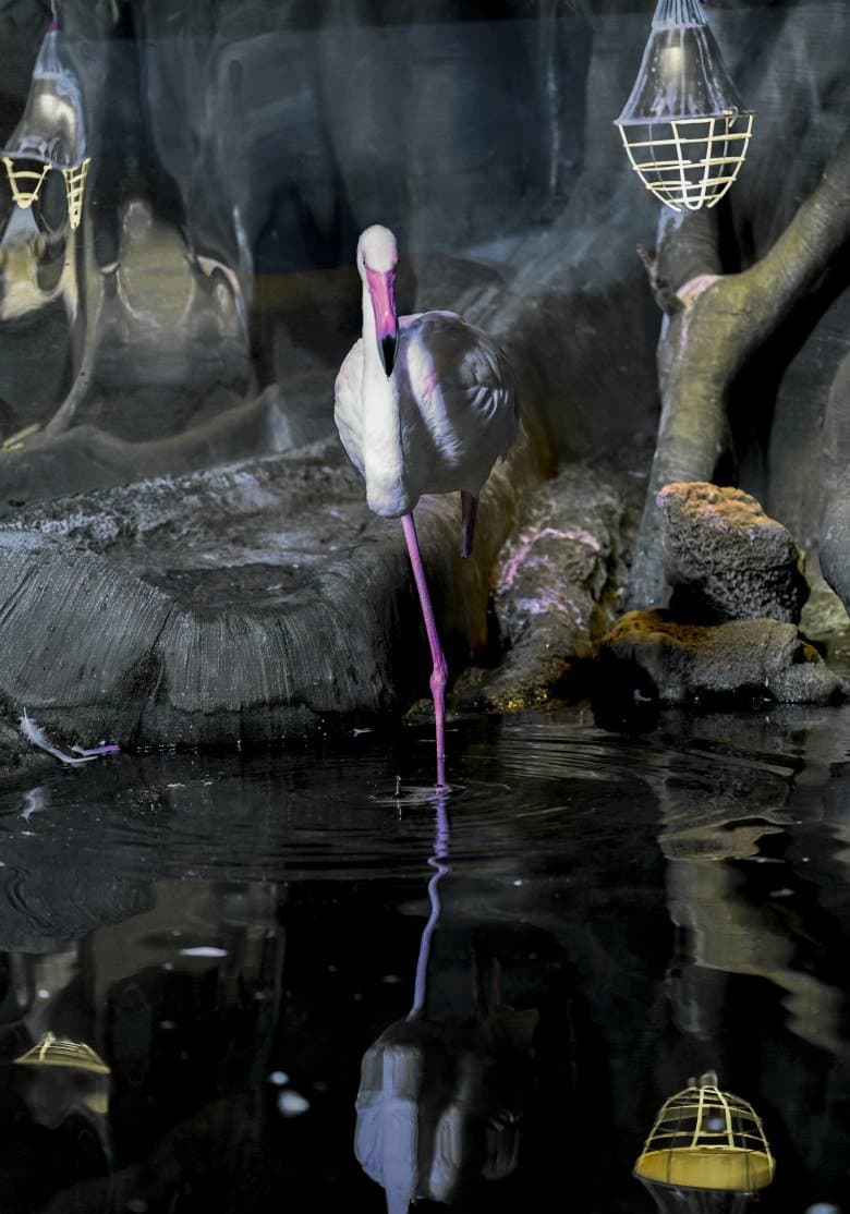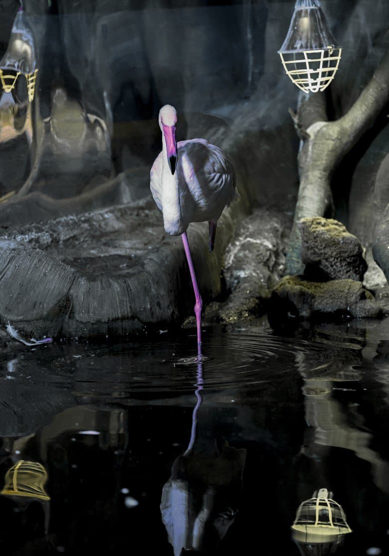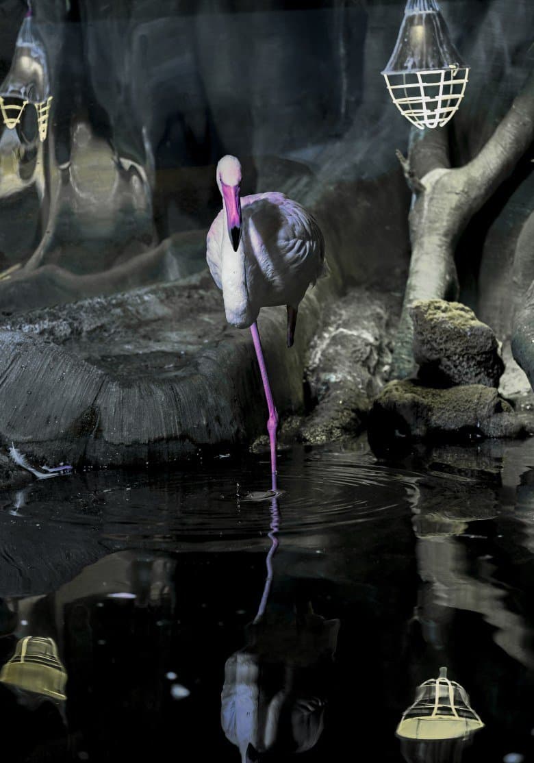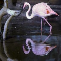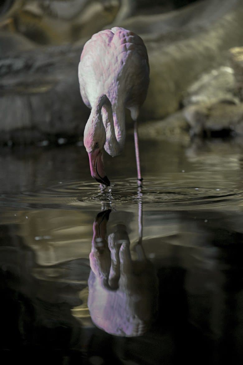 Серия 2. 13 кадров. Узкозонная АФ по голове фламинго. Фокусное расстояние 70 мм.
