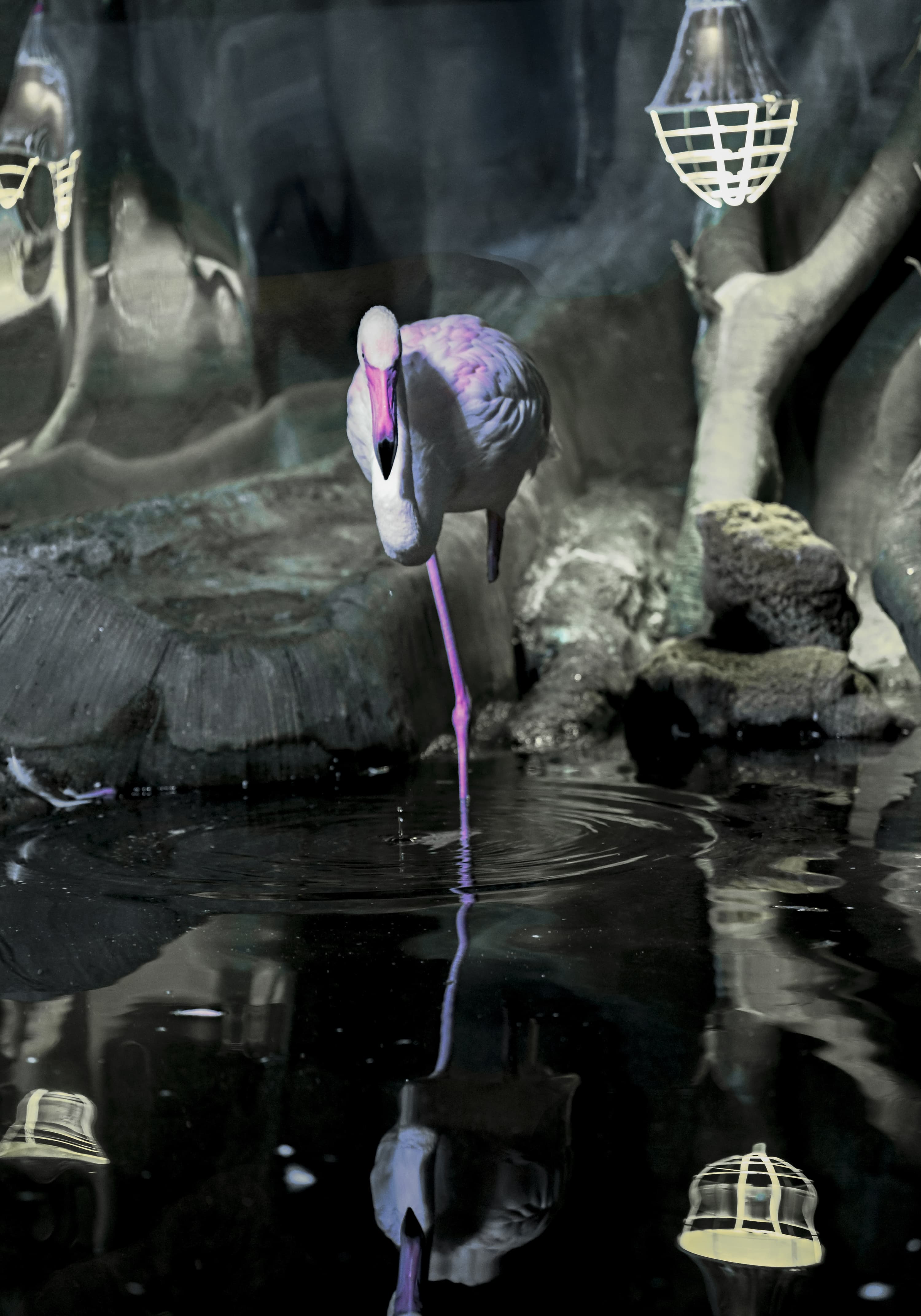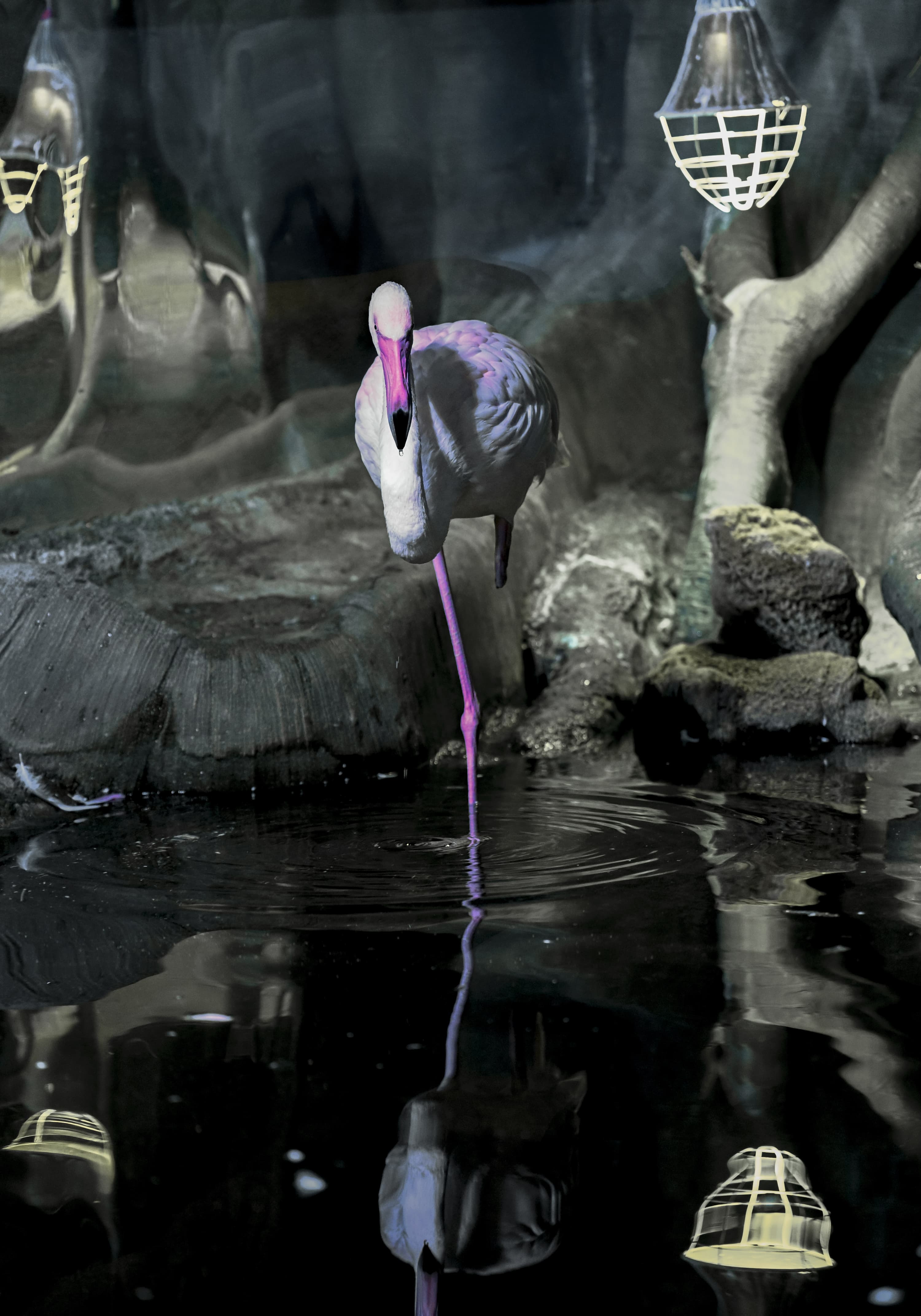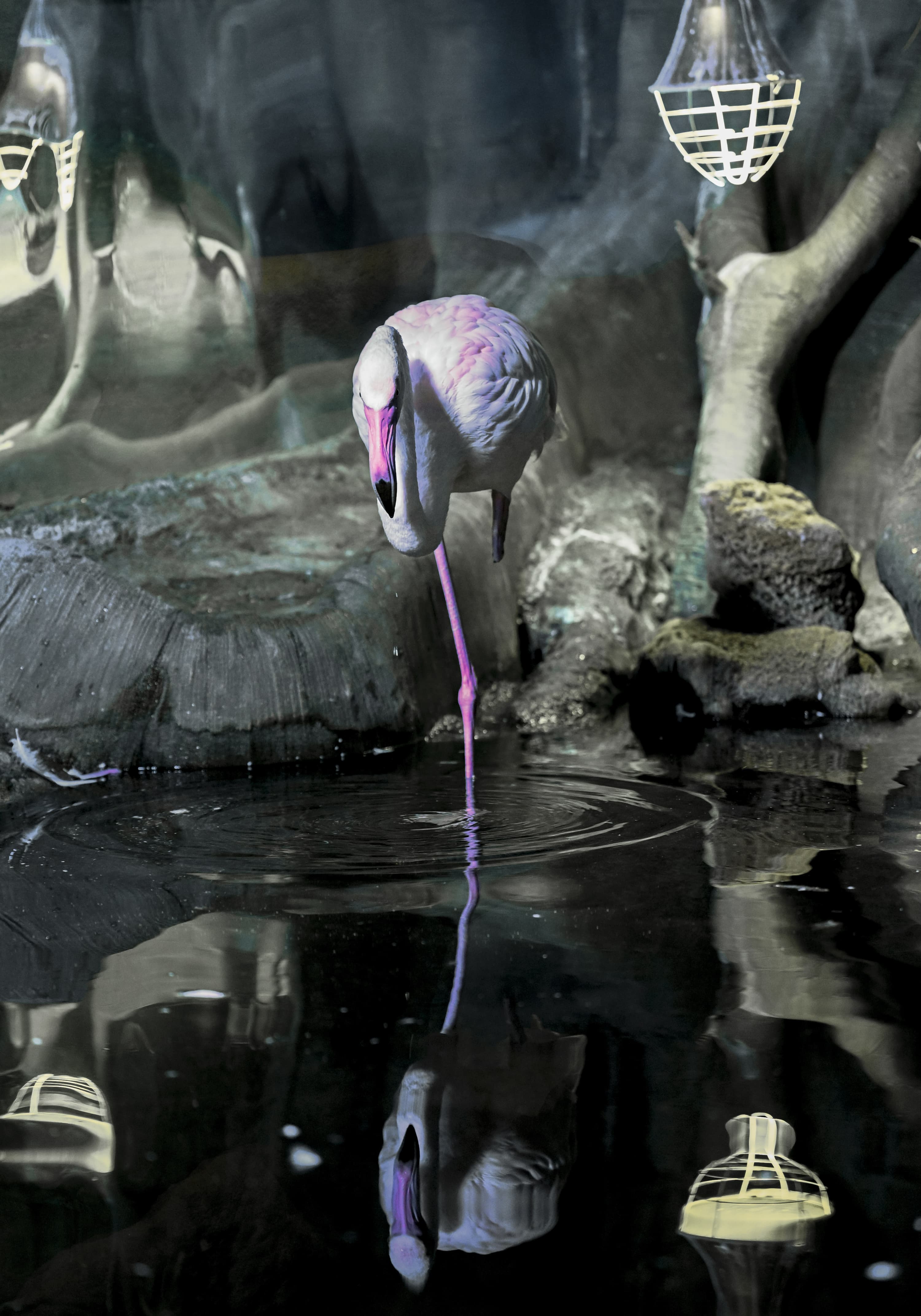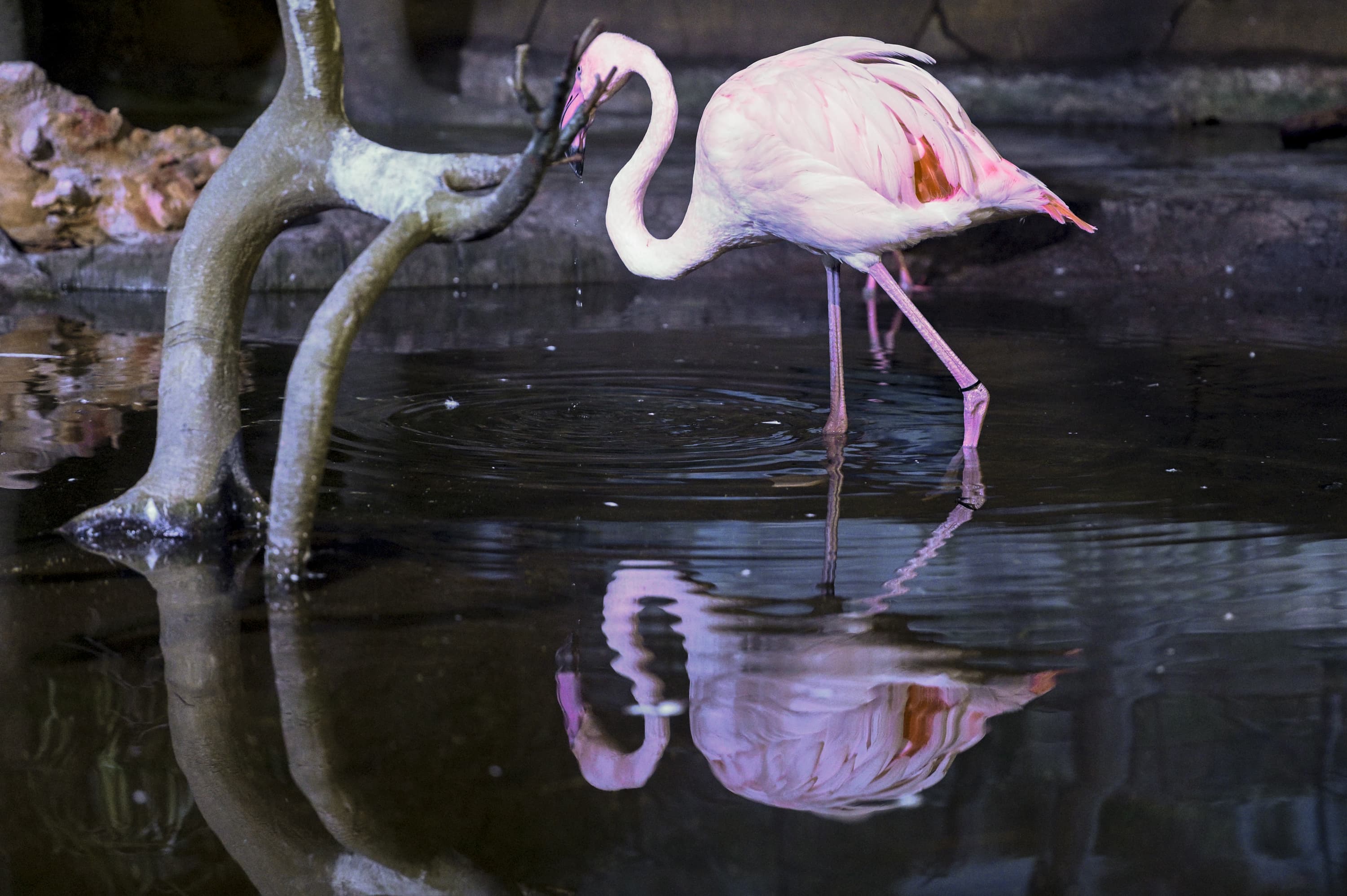 Серия 2. 13 кадров. Узкозонная АФ по голове фламинго. Фокусное расстояние 70 мм.