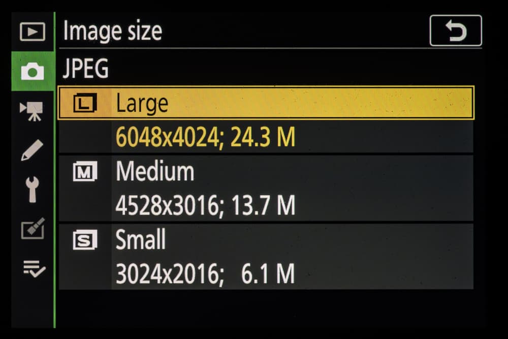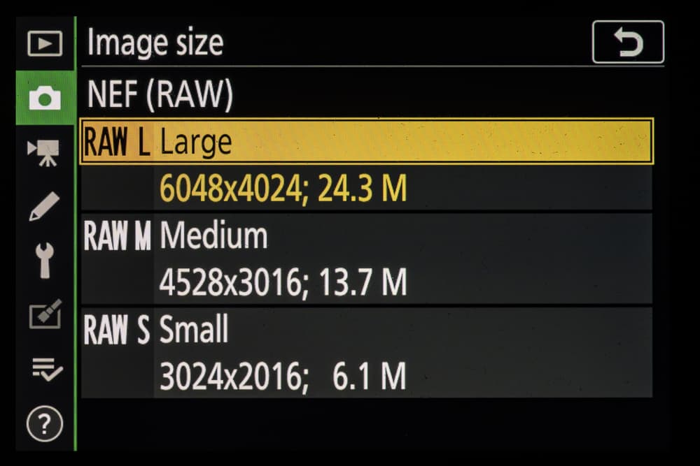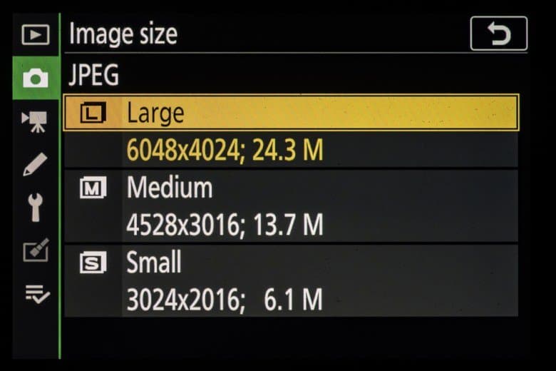 | Разрешение фотоснимков | FX (36×24 мм): 6048×4024, 4528×3016, 3024×2016; DX (24×16 мм): 3936×2624, 2944×1968, 1968×1312; 1:1 (24×24 мм): 4016×4016, 3008×3008, 2000×2000; 16:9 (36×20 мм): 6048×3400, 4528×2544, 3024×1696 |