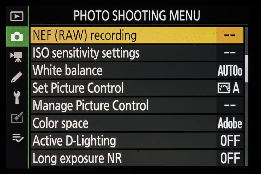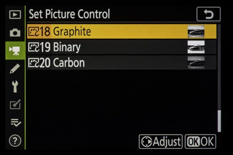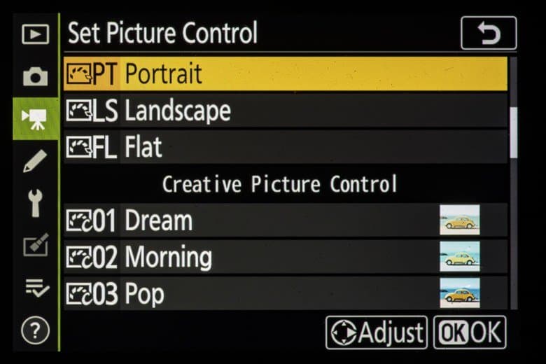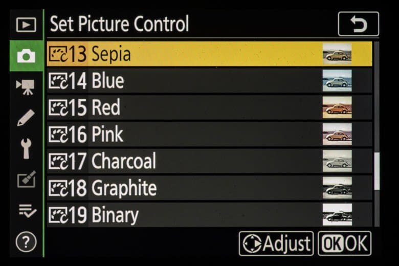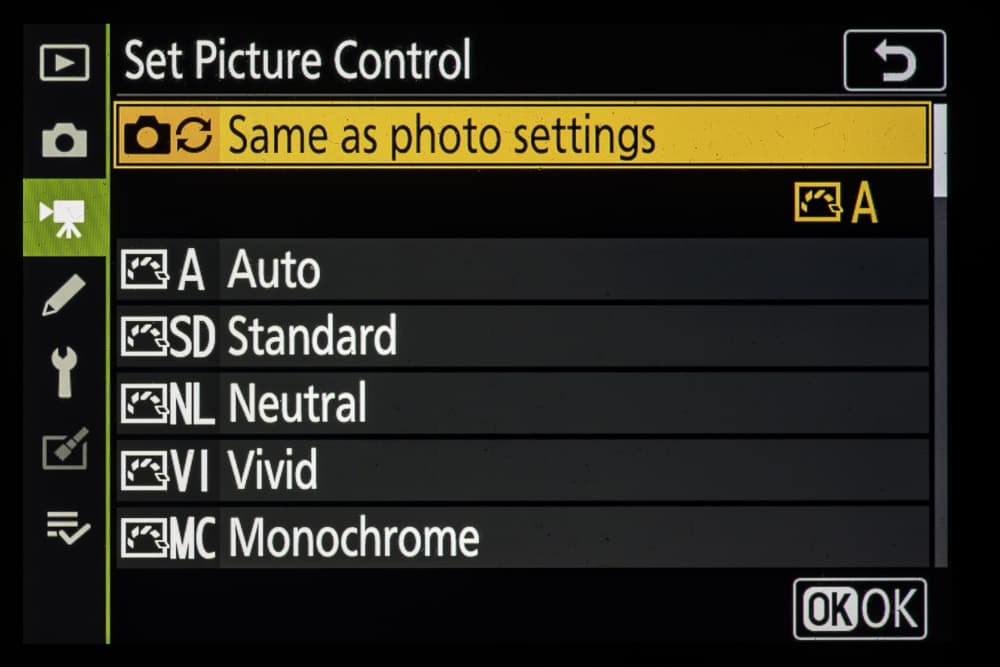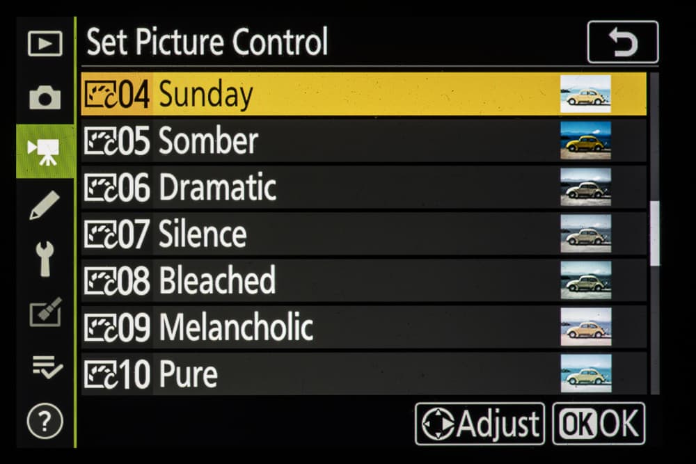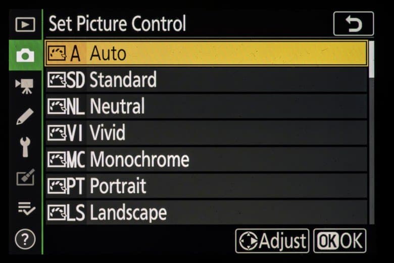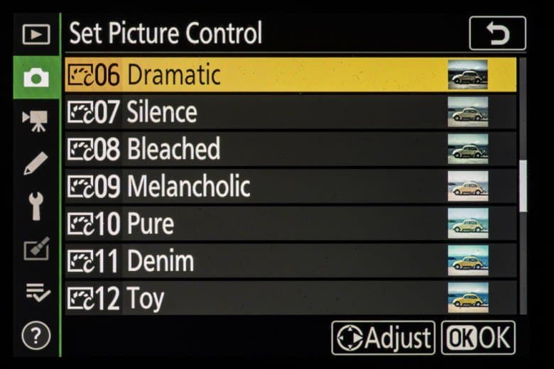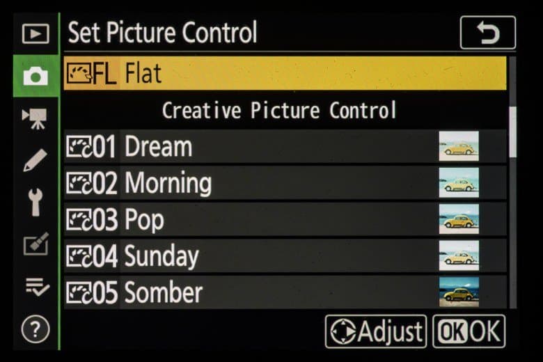 | Внутрикамерная обработка изображений (Picture Control) | базовые режима: «Авто», «Стандартный», «Нейтральный», «Насыщенный», «Монохромный», «Портрет», «Пейзаж» и «Равномерный»; творческие режимы: «Сон», «Утро», «Поп», «Воскресенье», «Мрачность», «Драматичность», «Тишина», «Выбеливание», «Меланхолия», «Чистота», «Деним», «Игрушка», «Сепия», «Синий», «Красный», «Розовый», «Уголь», «Графит», «Два тона», «Сажа» |