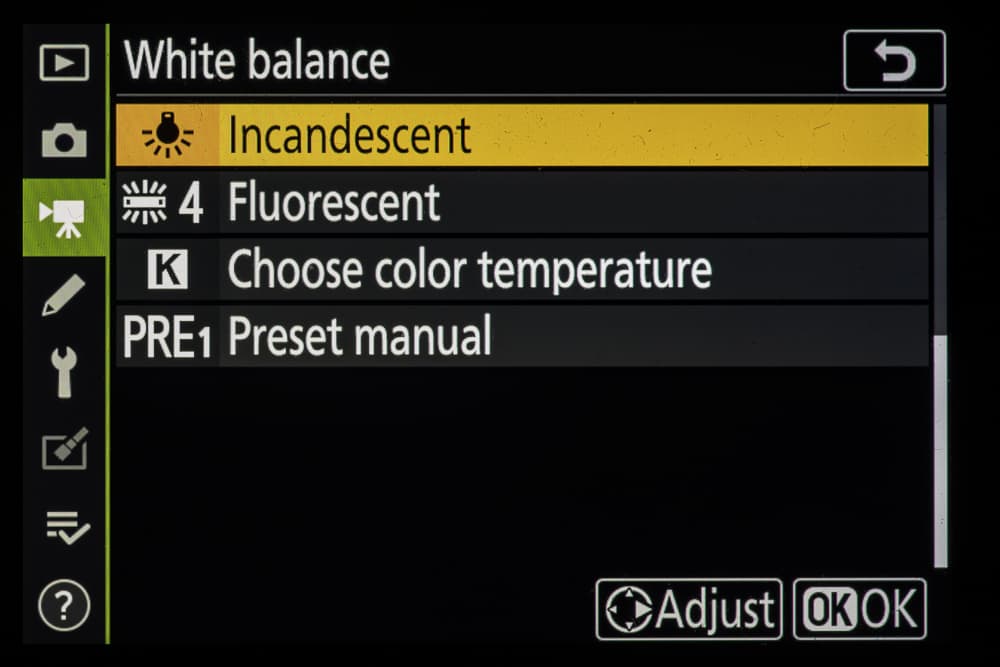 | Баланс белого | авто (3 типа), авто для естественного освещения, прямой солнечный свет, облачно, тень, лампы накаливания, лампы дневного света (7 типов), вспышка, прямая установка цветовой температуры (2500—10000 К), пользовательский (до 6 значений) |