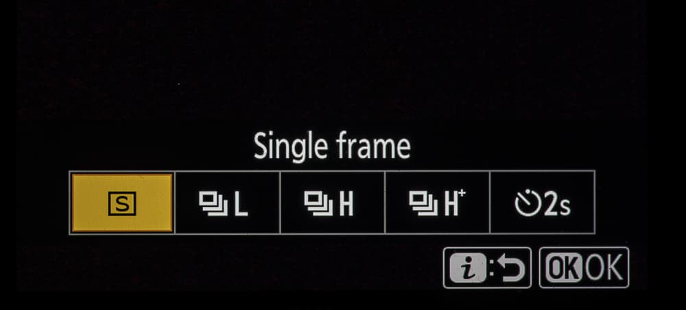 | Скорость непрерывной съемки | до 14 кадров/с; непрерывный низкоскоростной (CL): 1—5 кадров/с; непрерывный высокоскоростной (CH): 5,5 кадра/с; непрерывный высокоскоростной продленный: 14 кадров в секунду в формате RAW 12 бит или 10 кадров/с в формате RAW 14 бит |
