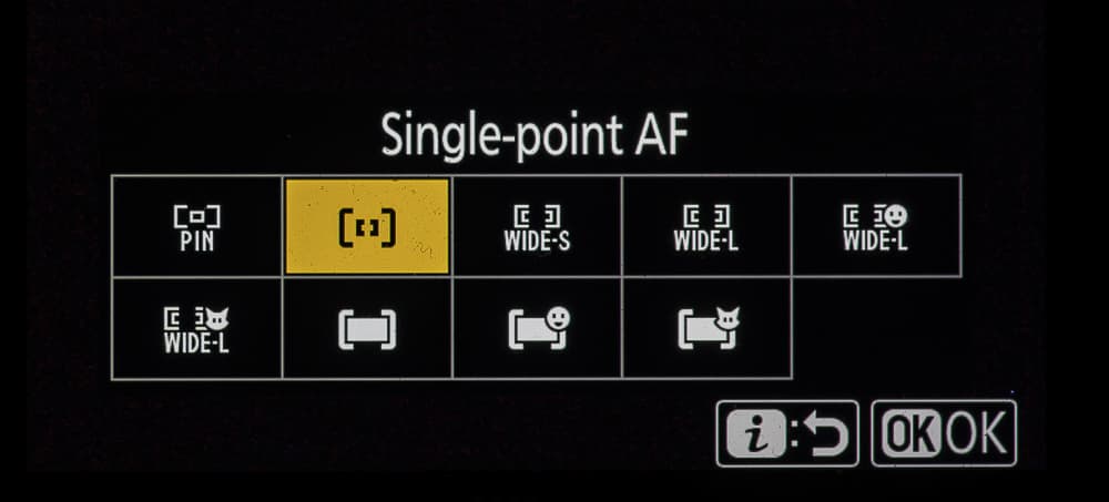 | Режимы фокусировки | однокадровая (AF-S), непрерывная следящая (AF-C), постоянная при видеосъемке (AF-F), прогнозирующая следящая, ручная |