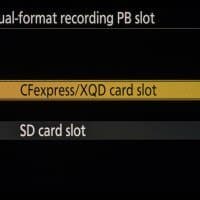Весьма важным нововведением стала поддержка не одного, а двух слотов для карт памяти, причем второй слот позволяет использовать носители SD/SDHC/SDXC высокоскоростного стандарта UHS-II. Эти карты более широко распространены и доступны по стоимости, чем XQD (Nikon Z6 работала только с ними).