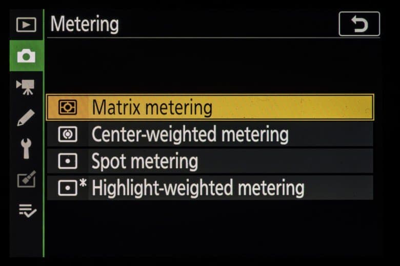 - центрально-взвешенный замер экспозиции,