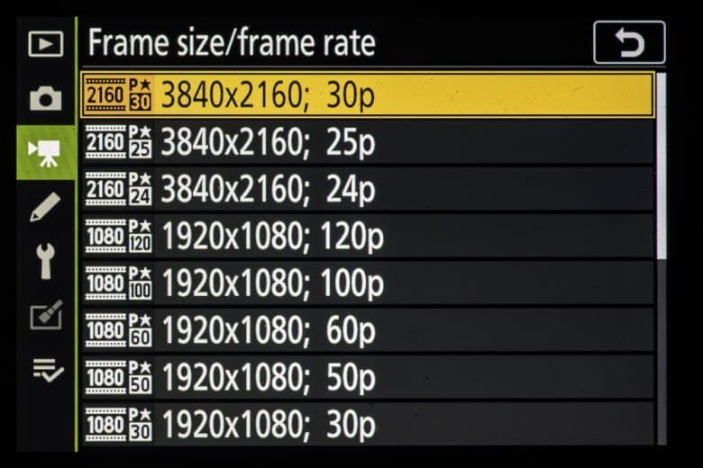 Nikon Z 6II позволяет записывать видео в стандарте UHD 4K (3840 × 2160 с прогрессивным сканированием) при 30 кадрах/с. При этом используется всё изображение, формируемое сенсором, без обрезки (масштабирования исходной картинки).
