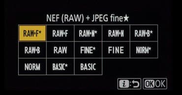 | Формат записи фотоснимков | JPEG (Exif v2.3); RAW (NEF 12- или 14-бит со сжатием, сжатием без потерь или без сжатия) |