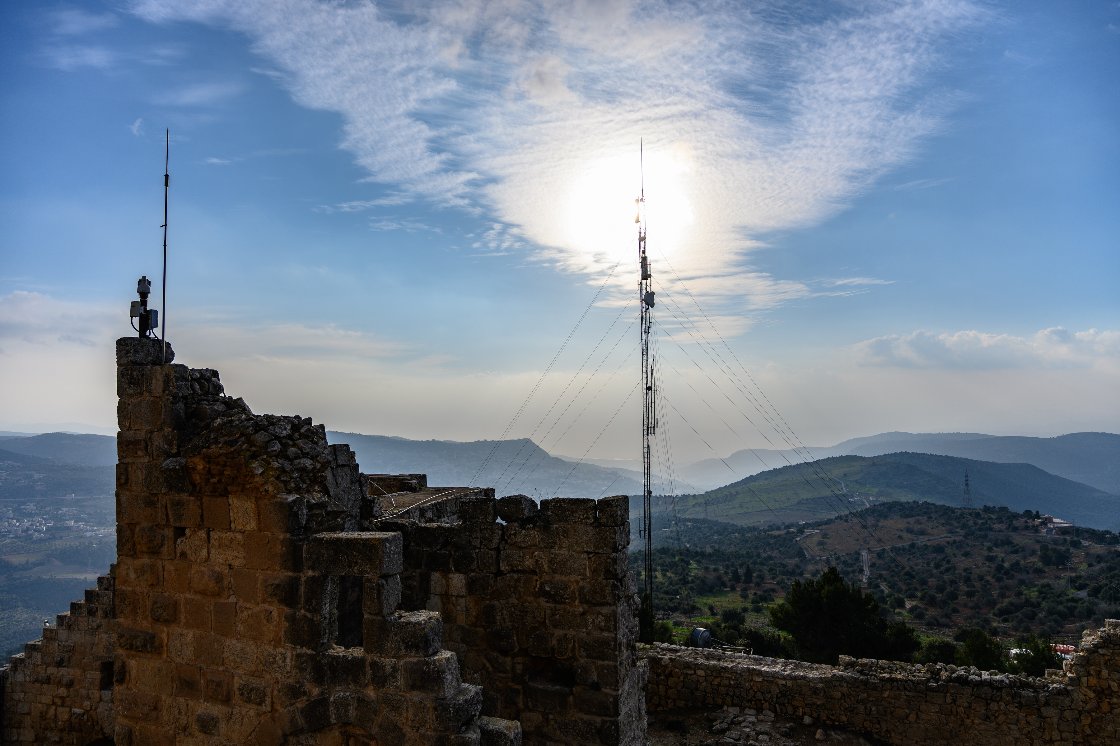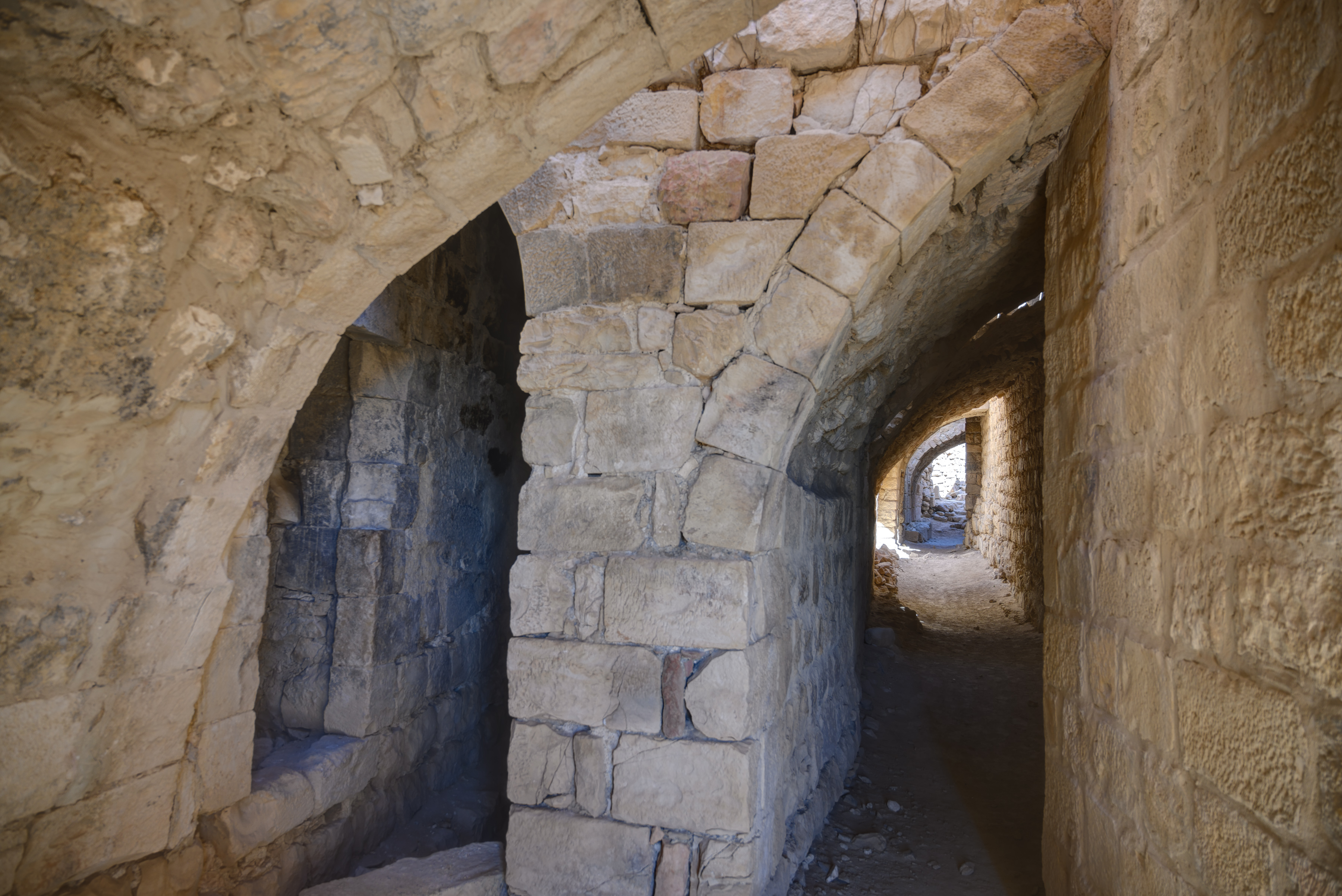 Далее дорога спускается вниз по склону, изгибается вправо, опускается еще ниже, делает два виража и на подъезде к замку разветвляется: левый поворот ведет к визитерскому центру, расположенному на соседнем холме. В этом центре есть ухоженная автостоянка, магазин сувениров, кафе с напитками (но не едой) и приемлемый по арабским меркам общественный туалет. Правый поворот на развилке — это собственно дорога к крепости. Однако тут установлен дорожный знак «кирпич», запрещающий въезд транспорту, и имеется шлагбаум, который, впрочем, в рабочие часы всегда открыт. Несведущий турист соблюдает правила дорожного движения, заезжает на разрешенную парковку у визитерского центра, оставляет там автомобиль и идет пешком около километра, а опытный въезжает под запрет, поднимается по склону горы на машине и оставляет ее на импровизированной парковке прямо у входа в крепость (GPS 30.531331, 35.561601). Помню, каким идиотом я почувствовал себя в первый приезд, когда, преодолев пешком немалый путь от парковки визитерского центра, обнаружил перед воротами крепости с десяток автомобилей. Впрочем, заехать в визитерский центр все же пришлось, но лишь для того, чтобы испить местного чаю.