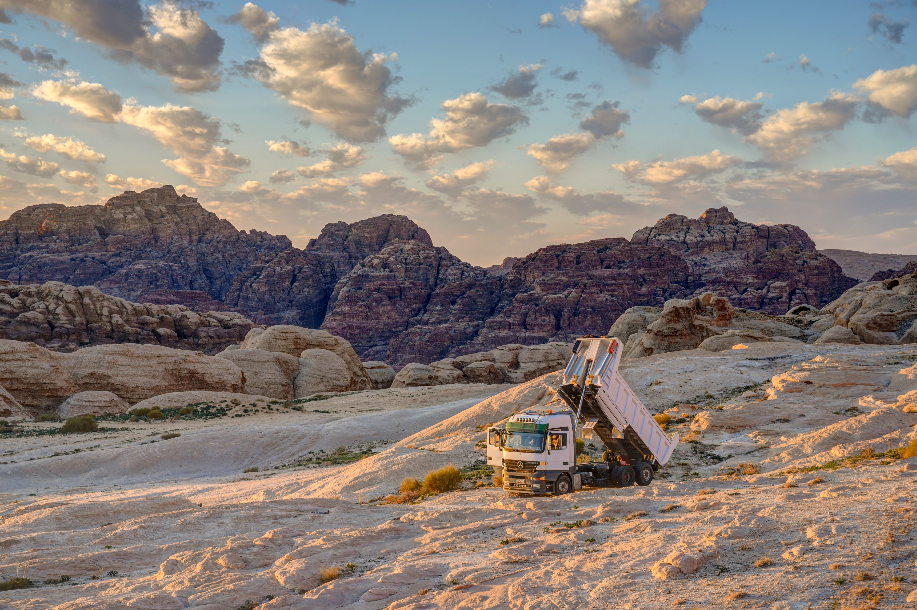 Совершенно непонятно, почему на следующем снимке самосвал стоял в столь откровенной позе: строительства здесь нет, сбрасывать ему было нечего, а дорога, ведущая к этому месту, очень скверного качества. Но для фото все это выглядело недурно.