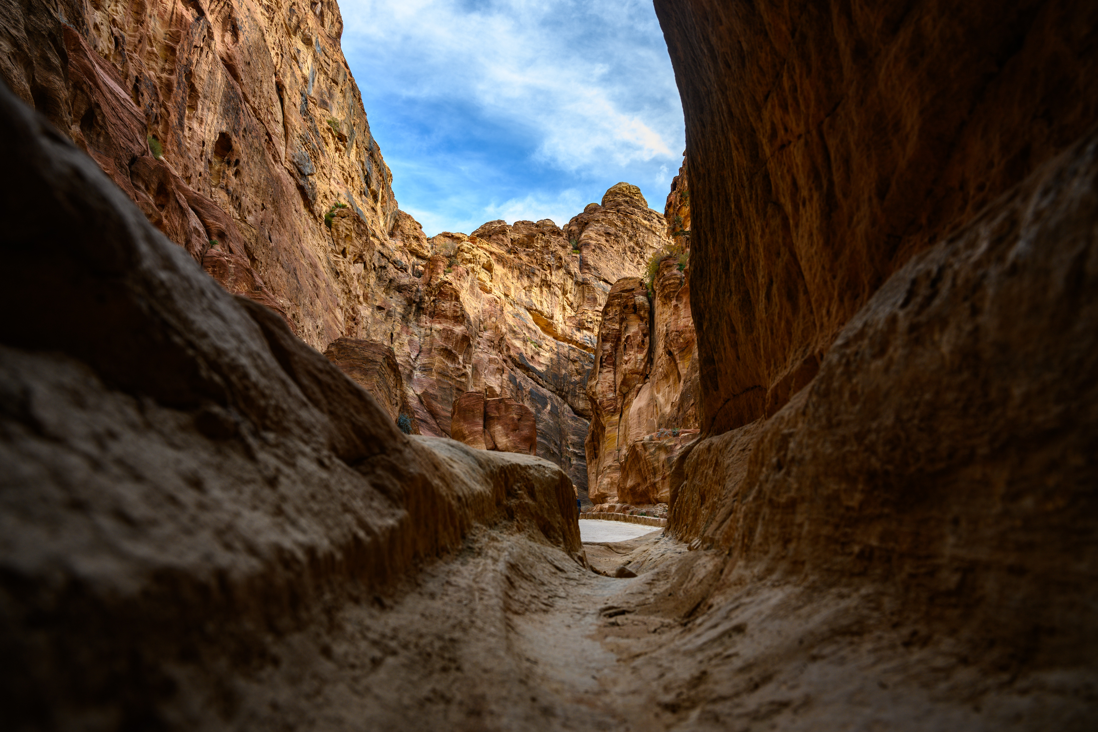 Петра коварно предлагает посетителю якобы несложный путь до самого конца своих туристически значимых районов. Движение моторизованного транспорта в городе запрещено, но дорога от входных турникетов все время идет под уклон, поэтому в направлении туда проделать его пешком совсем не сложно, но тем серьезнее оказывается путь обратно, когда посетитель уже налазался и наползался всласть, а то и сверх меры. После длительных переходов по песку, камням и горным тропам этот тягучий четырехкилометровый подъем по дороге к выходу может стать нешуточным испытанием, особенно если на тебе рюкзак с семью и более килограммами фототехники.