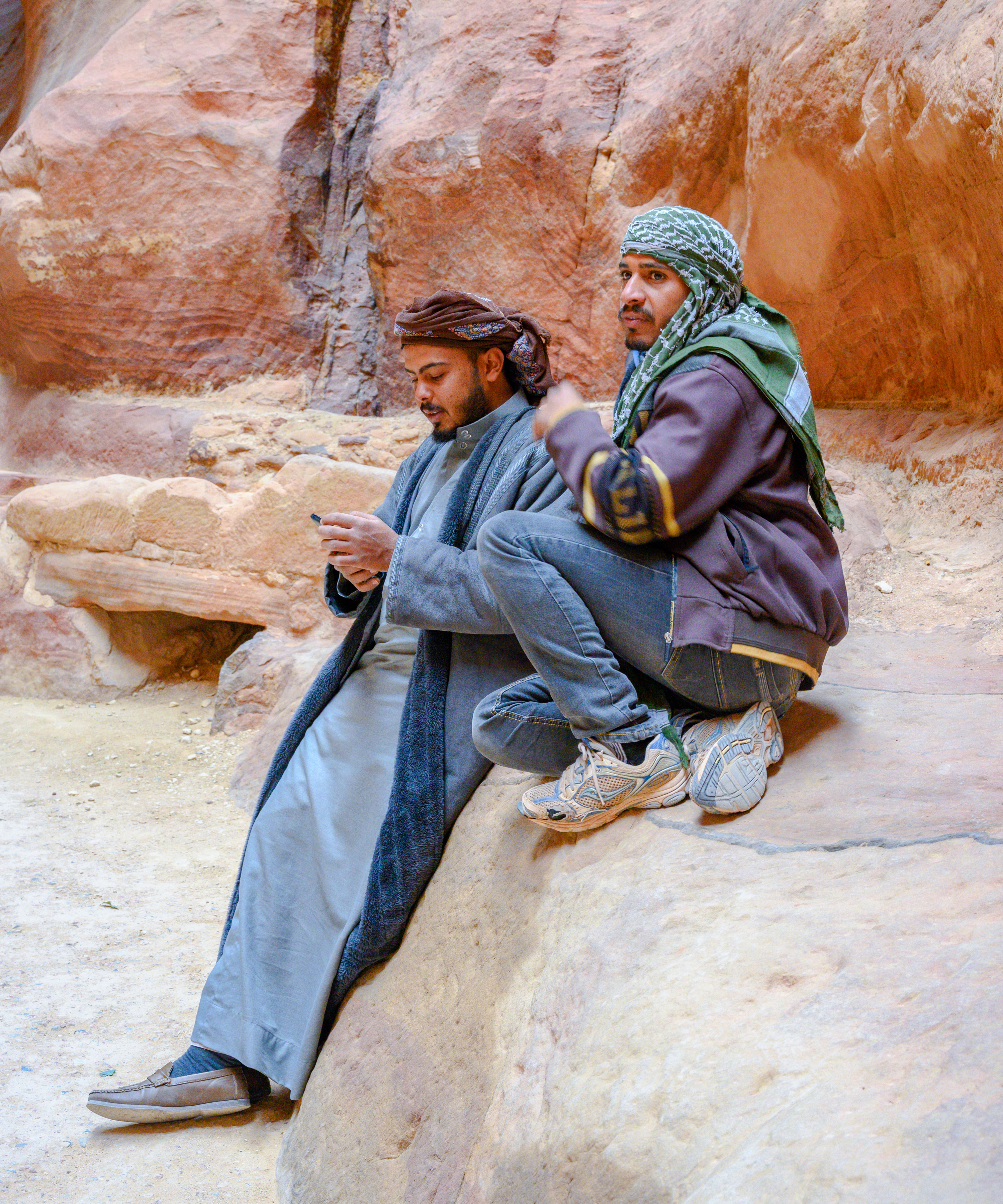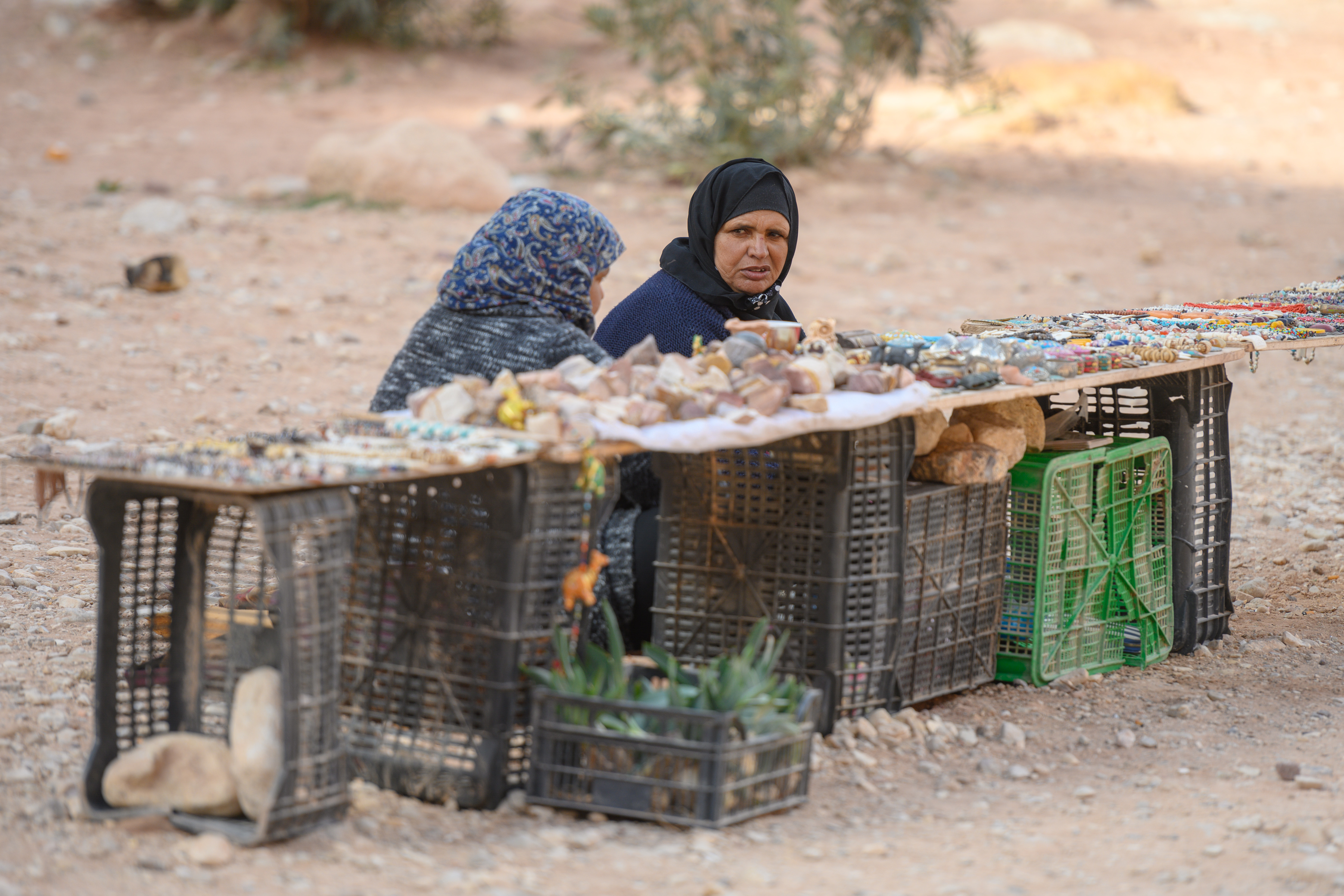 Для хозяйственных нужд бедуины использовали пещеры, оставшиеся с набатейских времен, и их животные основательно загадили Розовый город в самом прямом смысле слова. Превращая Петру в крупный туристический объект, правительство Иордании построило для этих людей целый поселок Эль-Бейда со всей необходимой инфраструктурой в непосредственной близости от набатейской столицы и переселило бедуинов из чужих гробниц в их собственные новые дома. Тем не менее многие номады по-прежнему тяготеют к древнему городу, зарабатывая здесь на туристическом буме как проводники, погонщики ослов, коневоды, торговцы сувенирами и прохладительными напитками.