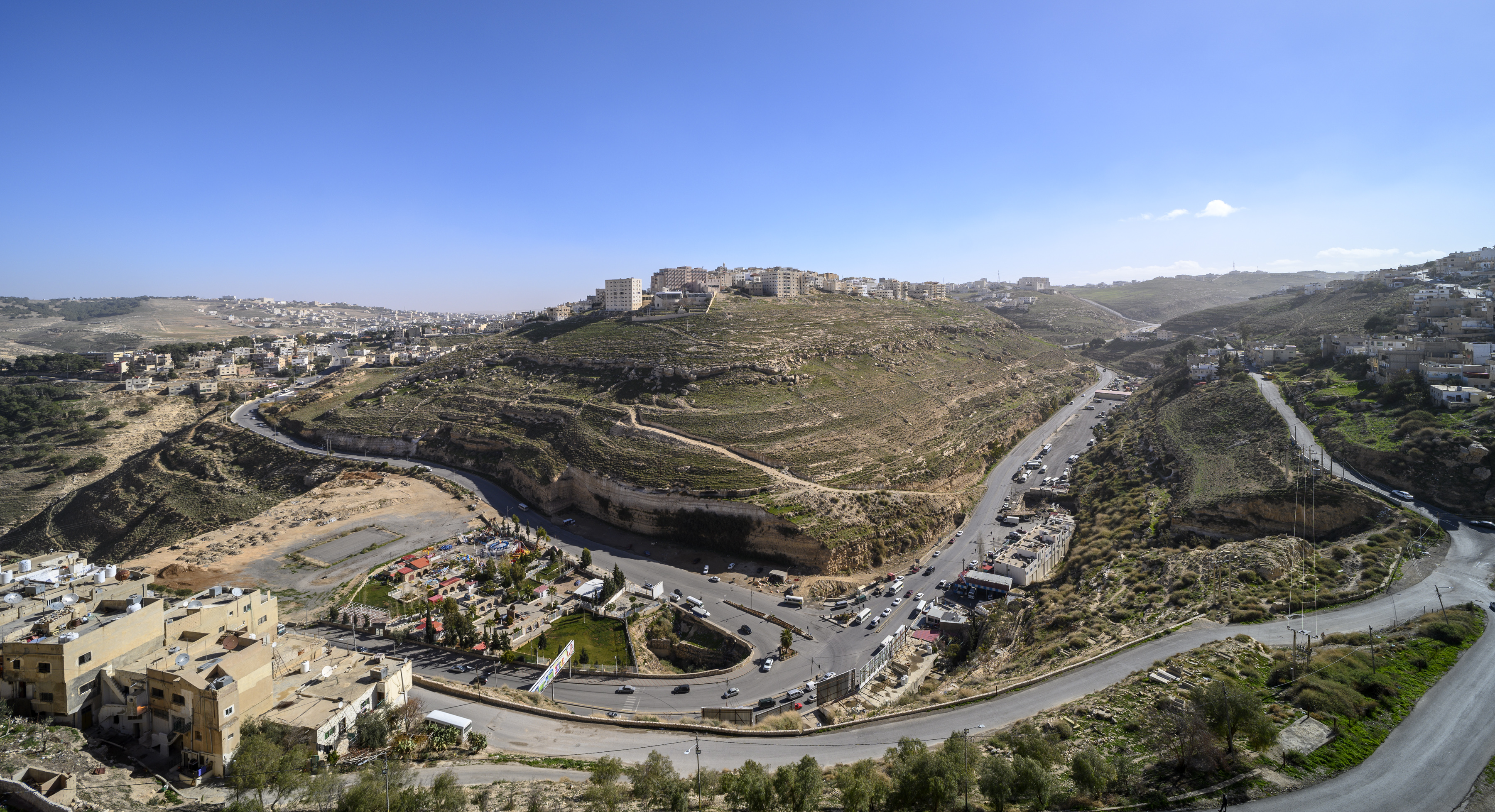 На спуске дороги по ходу нашего следования есть несколько мест для остановки авто, откуда можно сделать снимки с головокружительной перспективой. Одна из них, почти всегда свободная, — возле отеля Аланбат (GPS 30.325828, 35.491946).