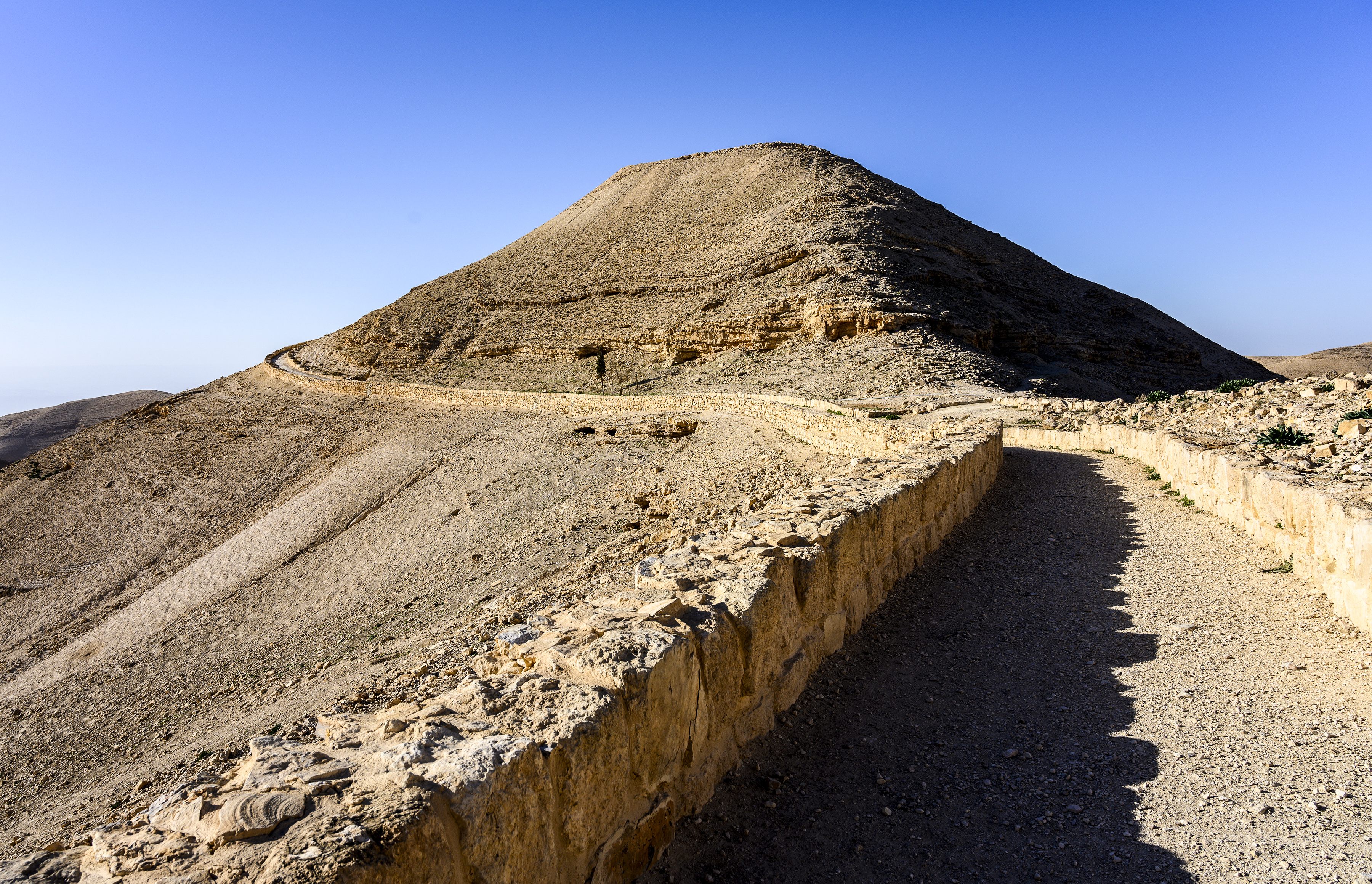Узкая горная дорога делает несколько десятков петель, и машина подъезжает к Мукавиру, Иродовой горе, на вершине которой торчат вверх, как два перста, две колонны дворца Иродов, когда-то возведенного в крепости, называвшейся Махерус.