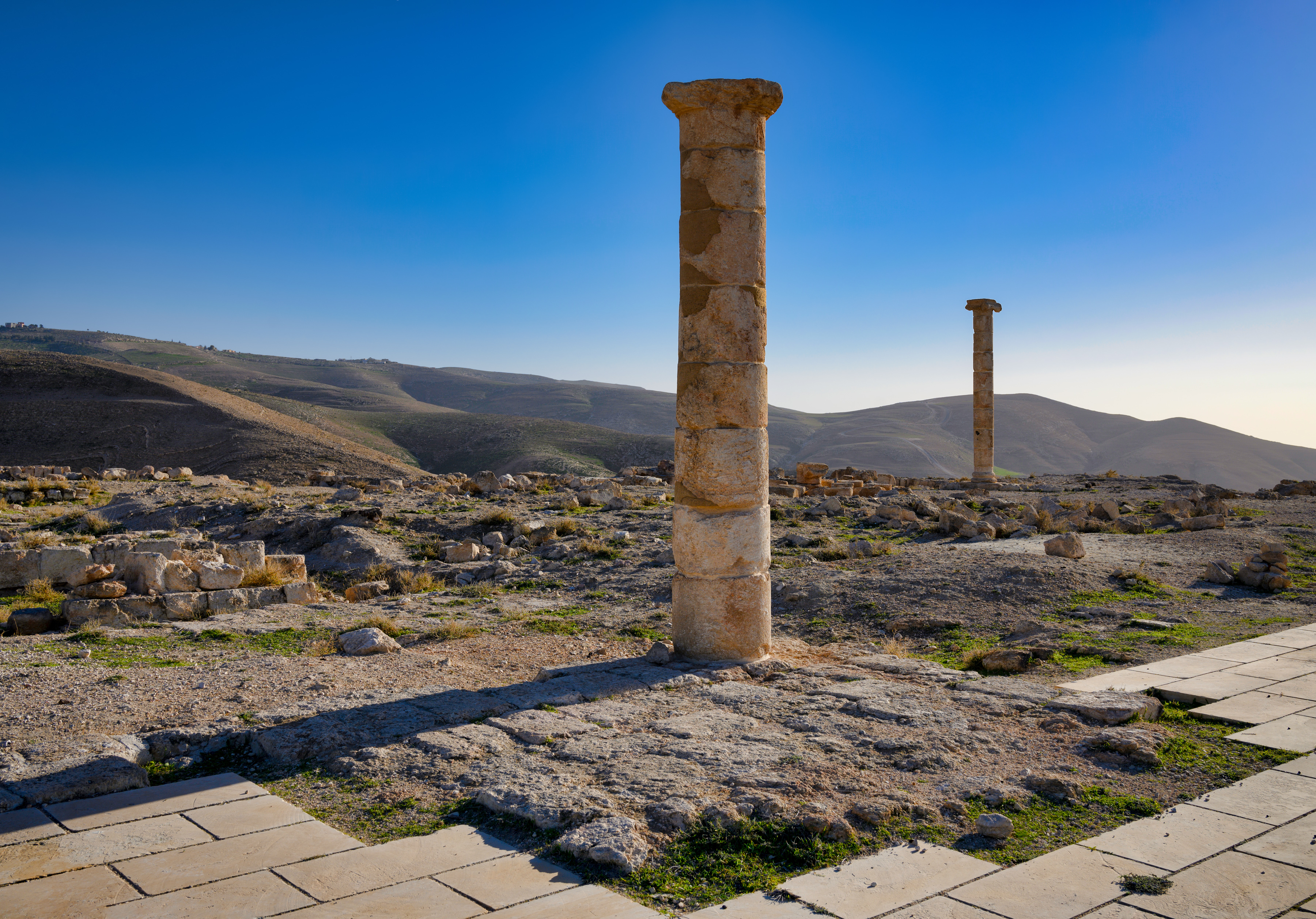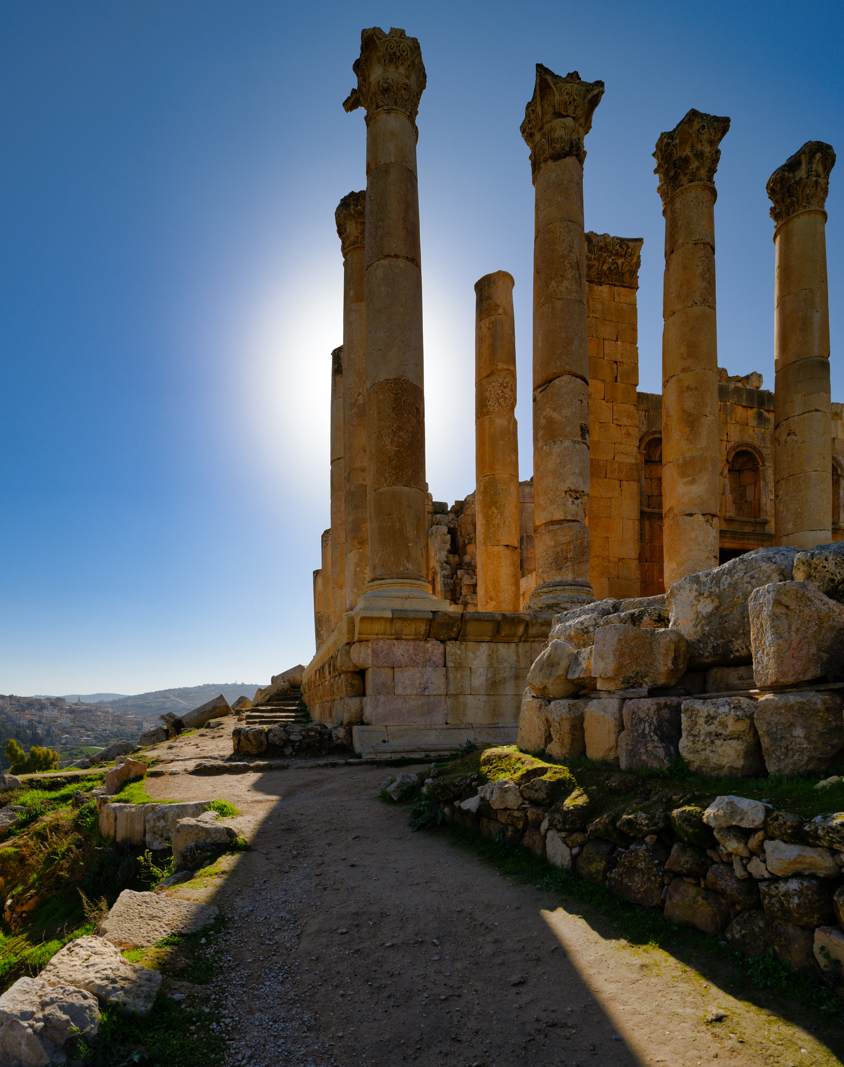 Не встретив ни одного попутчика, мы довольно быстро преодолели подъем и по пути насладились видом Римского города с его Колоннадной улицей и стоящим в конце дворцом Дочери фараона (Каср Эль-Бинт).