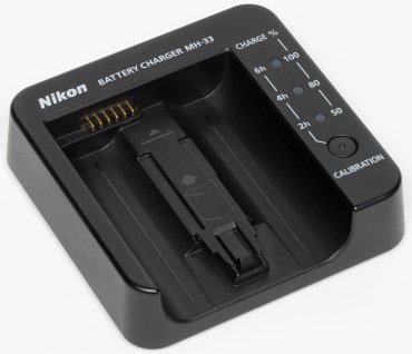 Зарядка аккумулятора производится при помощи фирменного зарядного устройства MH-33 и фирменного же адаптера питания EH-7P (оба входят в комплект поставки). Согласно производителю, полностью разряженная батарея требует около 4 часов для восполнения заряда до 100%.