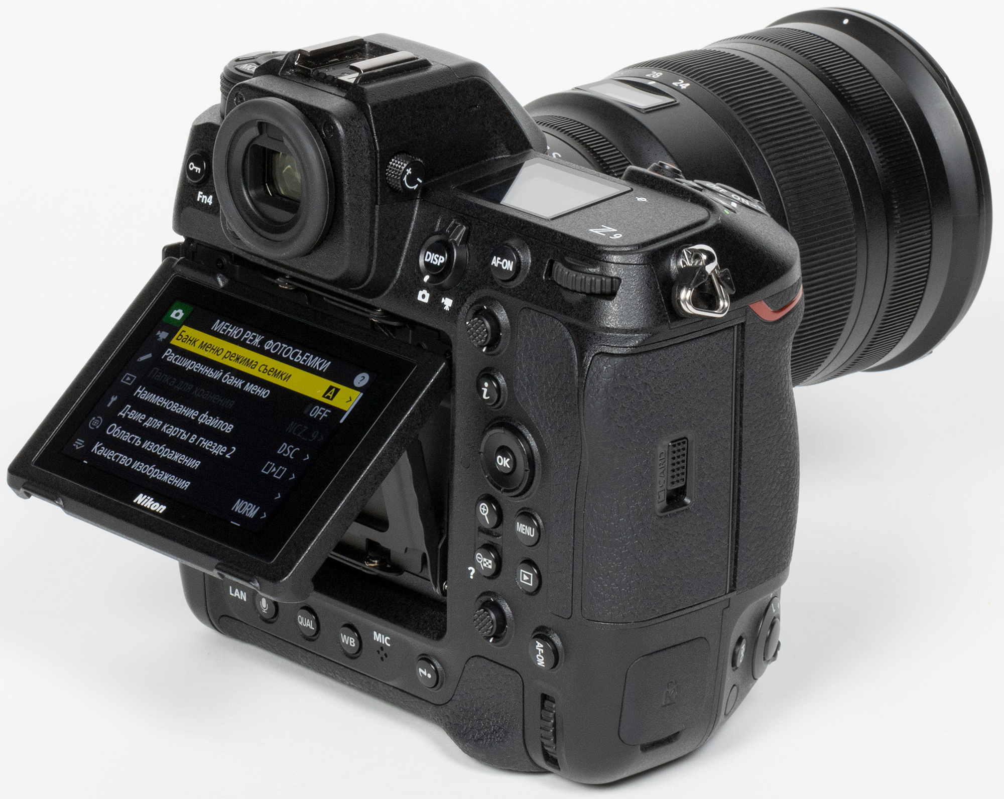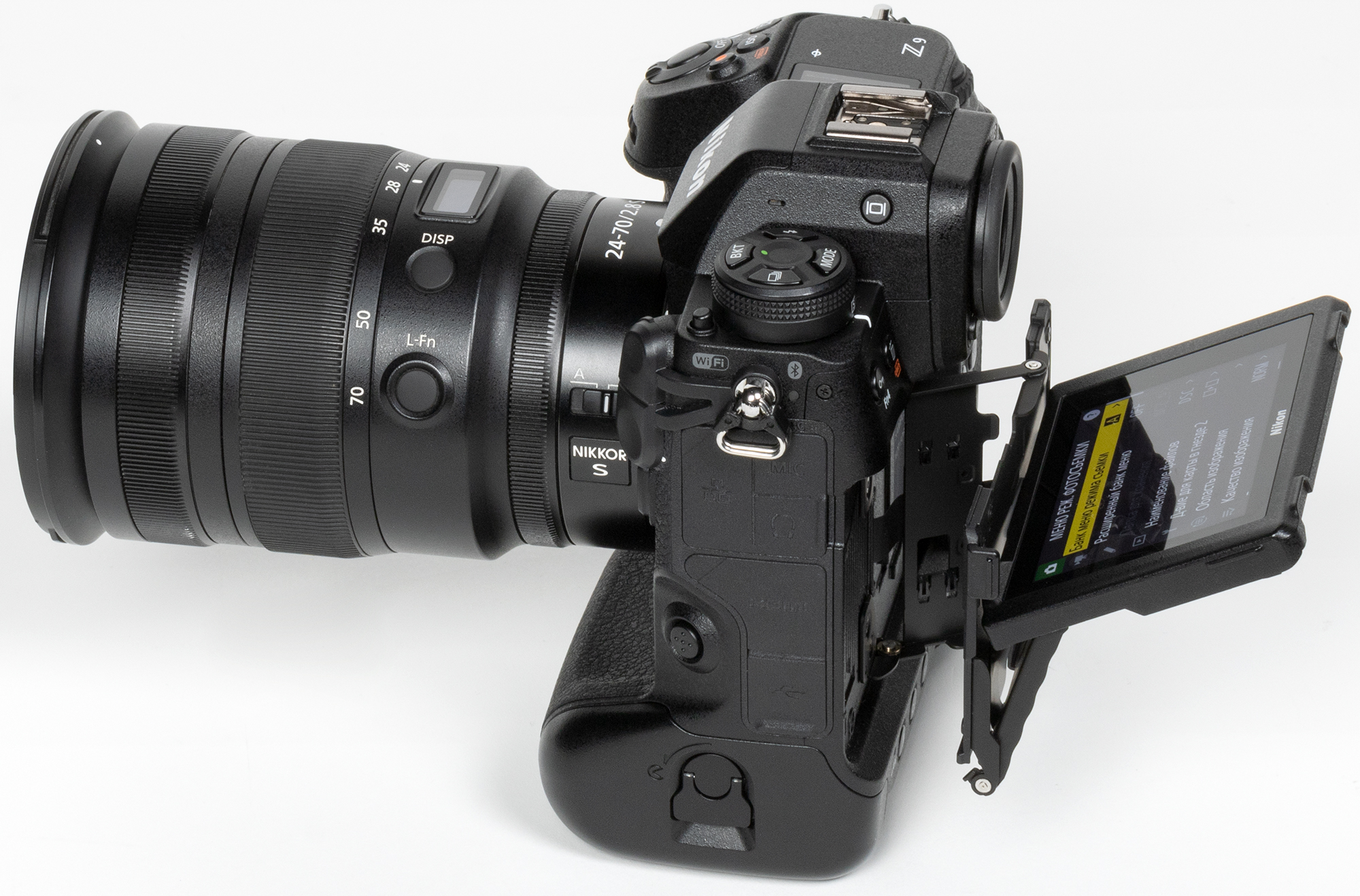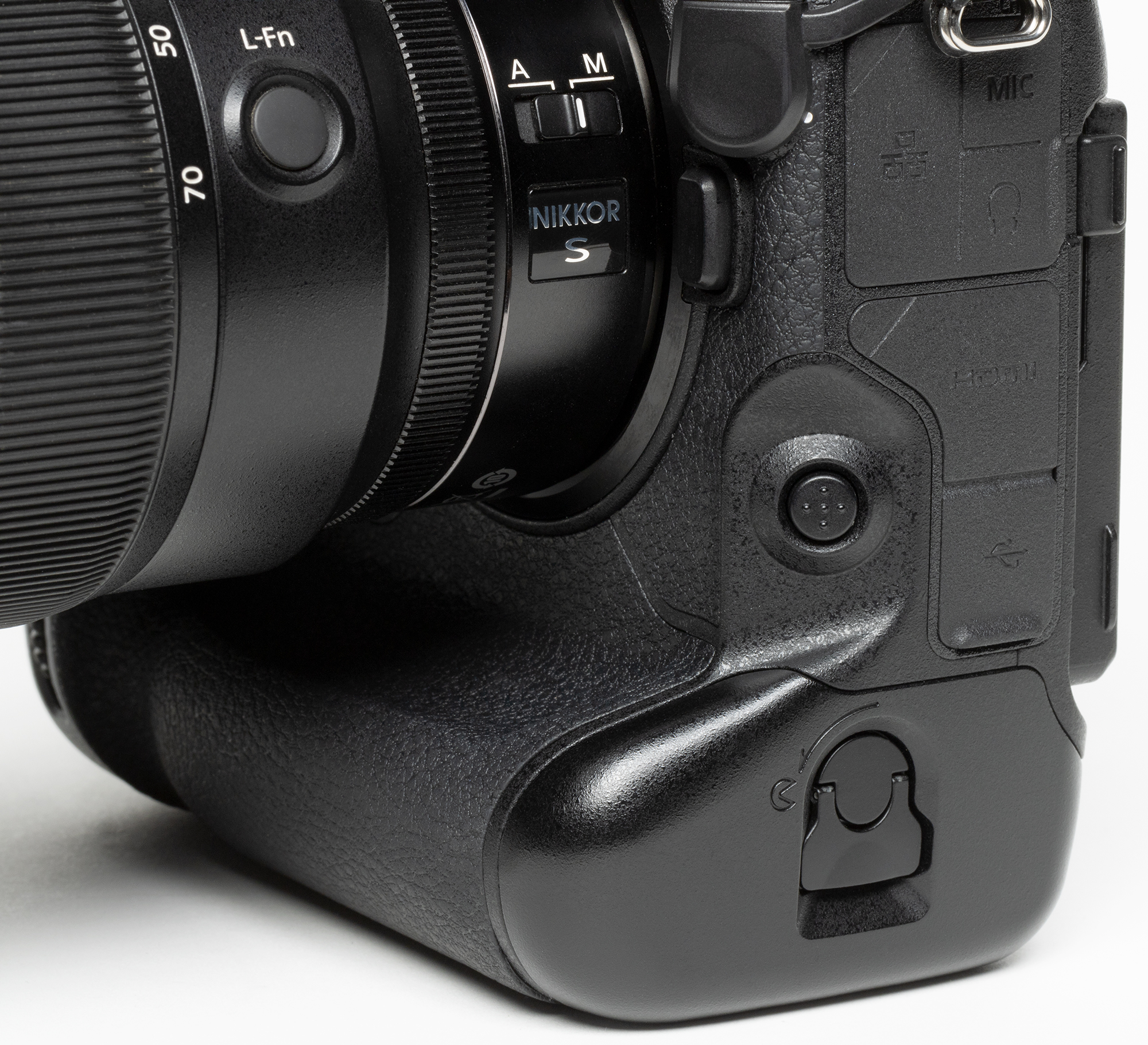 Источник автономного питания (модель EN-EL18d) скрывается в толще вертикальной ручки. Его форма и размеры сравнимы с аналогами из мира профессиональных зеркальных камер (шестой признак).