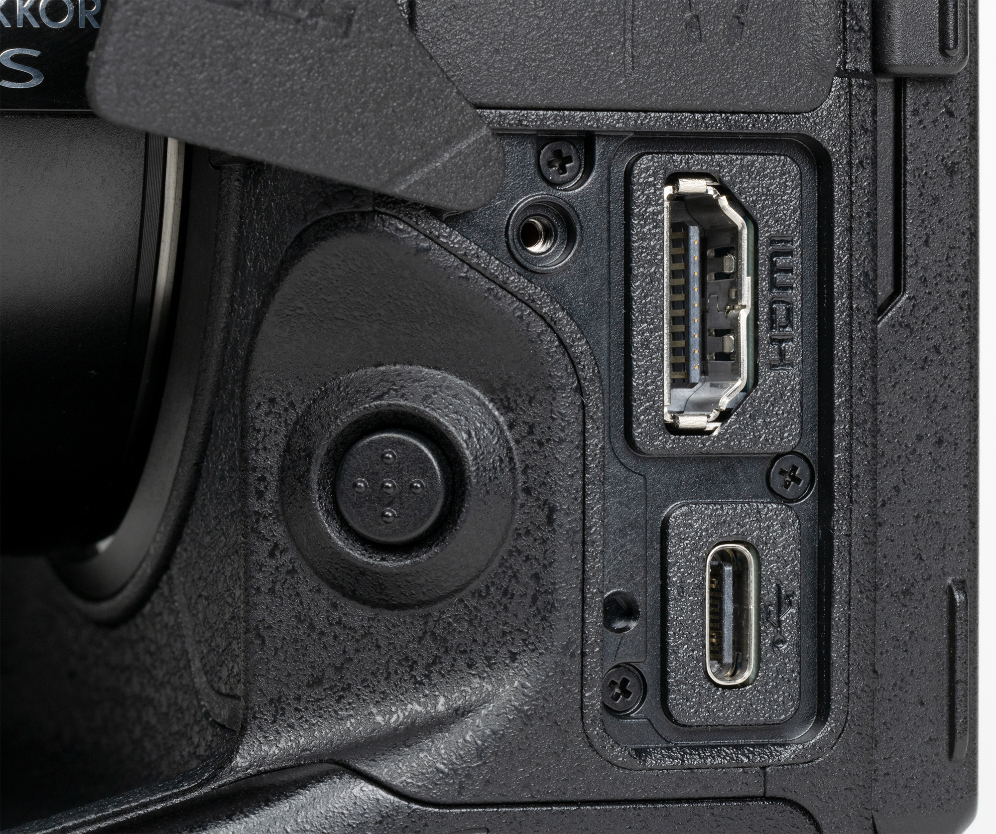 На левой боковой панели Nikon Z9 самая заметная деталь — крышка отсека для карт памяти.