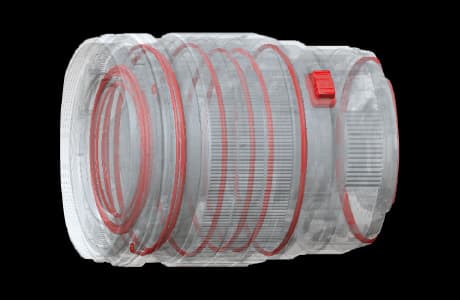 Объектив надежно защищен от проникновения внутрь пыли и влаги. На схеме красным показаны зоны с дополнительными герметизирующими уплотнениями.