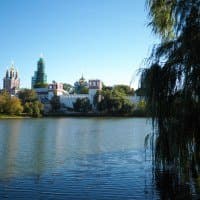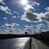 Контраст сцены объектив держит превосходно. Даже при максимальном раскрытии картинка не приобретает известных недостатков в виде вялости и блеклости. Впрочем, при F1,2 (и в меньшей степени при F1,4) несколько страдает четкость изображения из-за утраты деталей в участках минимальной и максимальной яркости. Пересвеченные зоны (кресты на куполах) как бы переливаются через свои границы и лишают резкости контуры избыточно ярких объектов.