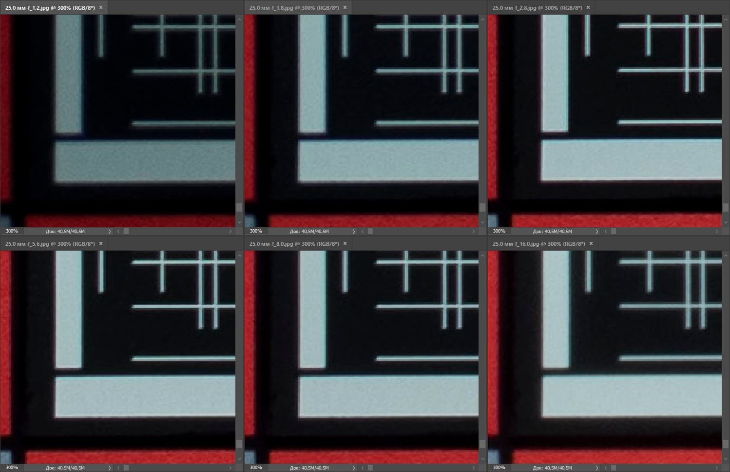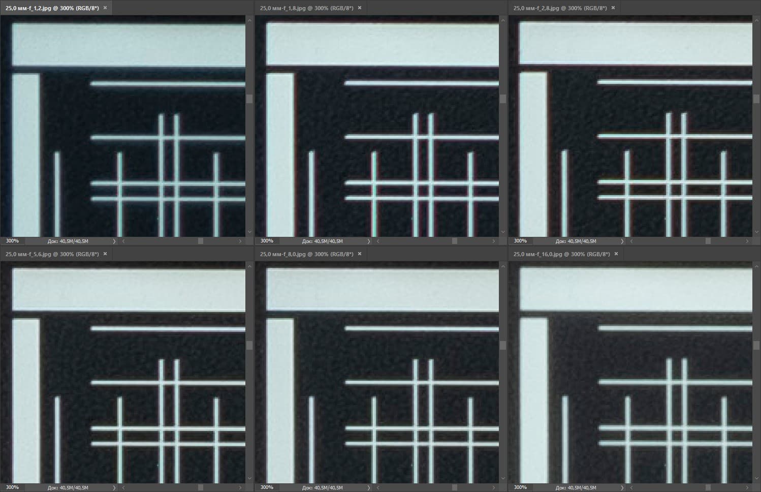 | Разрешение, центр кадра | Разрешение, край кадра |