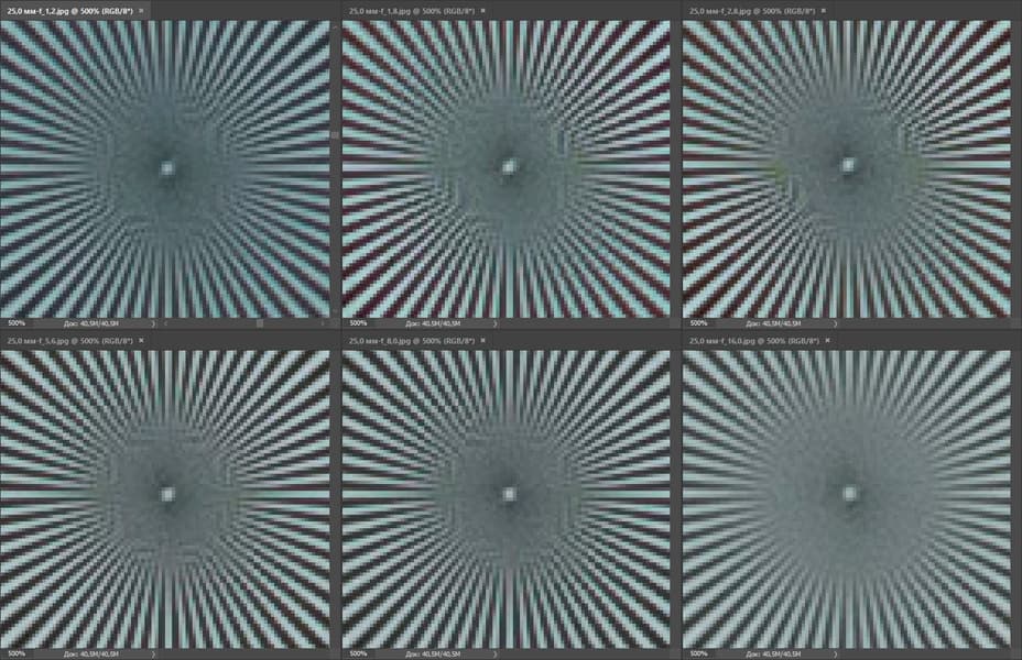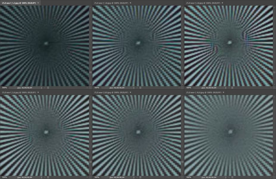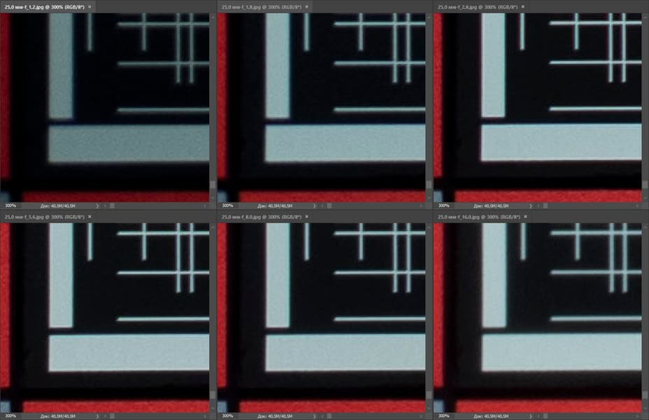 Резкость великолепна уже при F1,2. Диафрагмирование до F2–F2,8 практически не изменяет ее степени в центре кадра и позволяет лишь чуть-чуть усилить на периферии. При F4–F5,6 резкость и детализация достигают максимума, а при F11–F16 совсем ненамного понижаются из-за влияния дифракции.