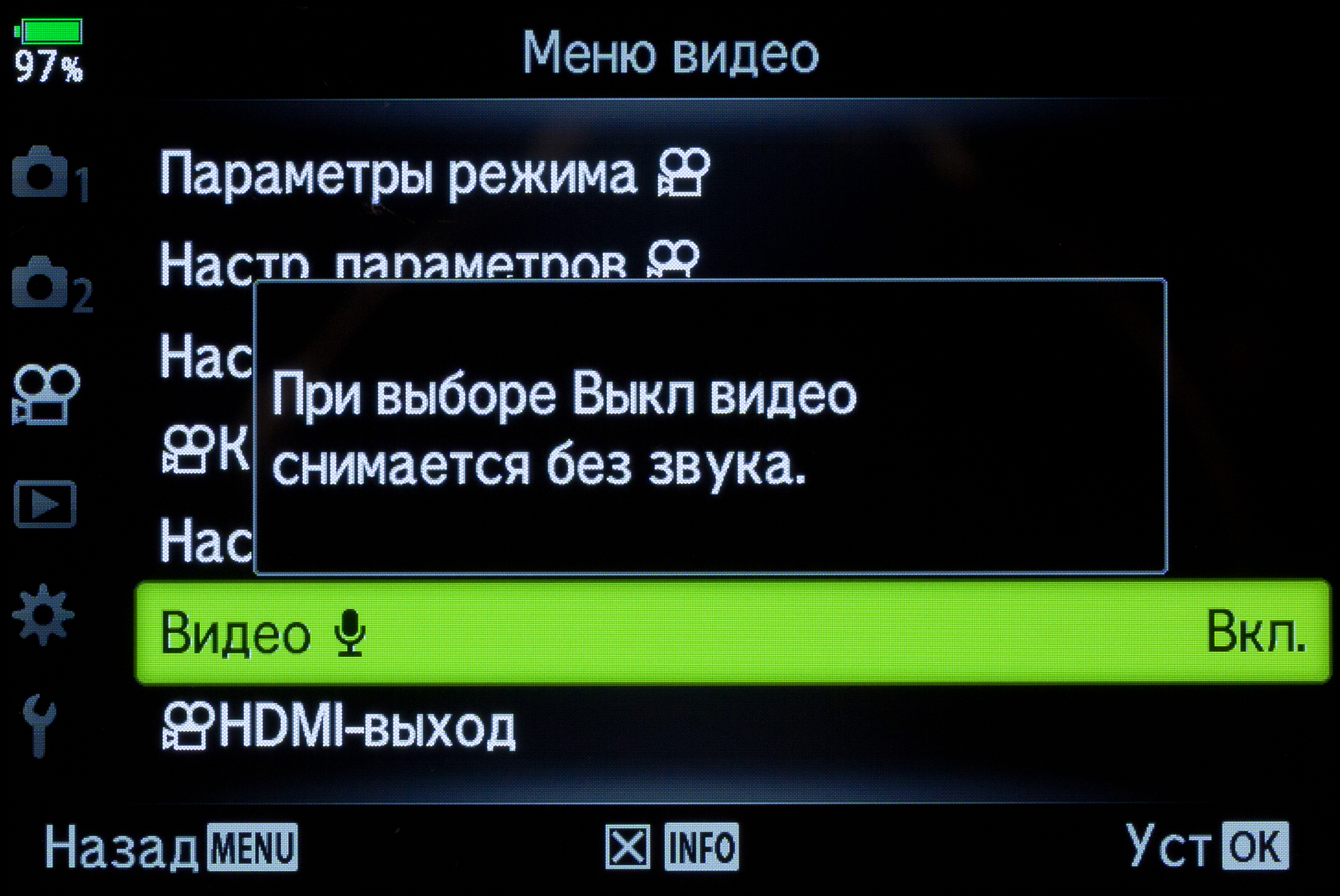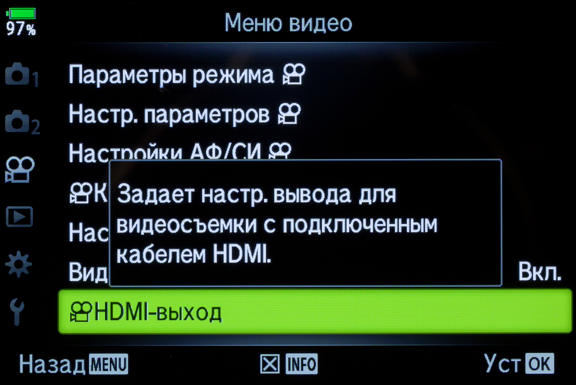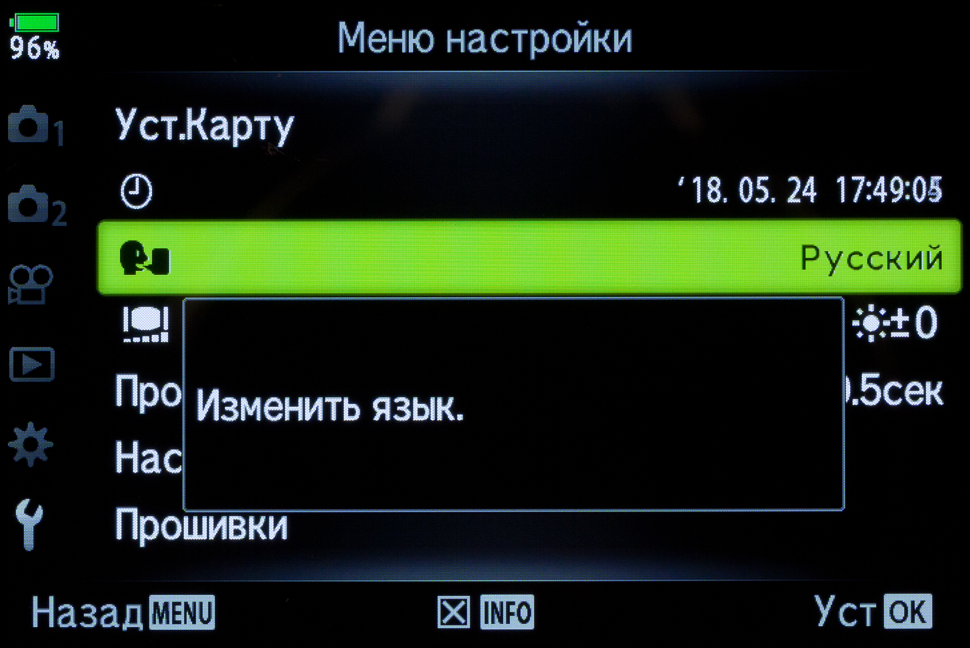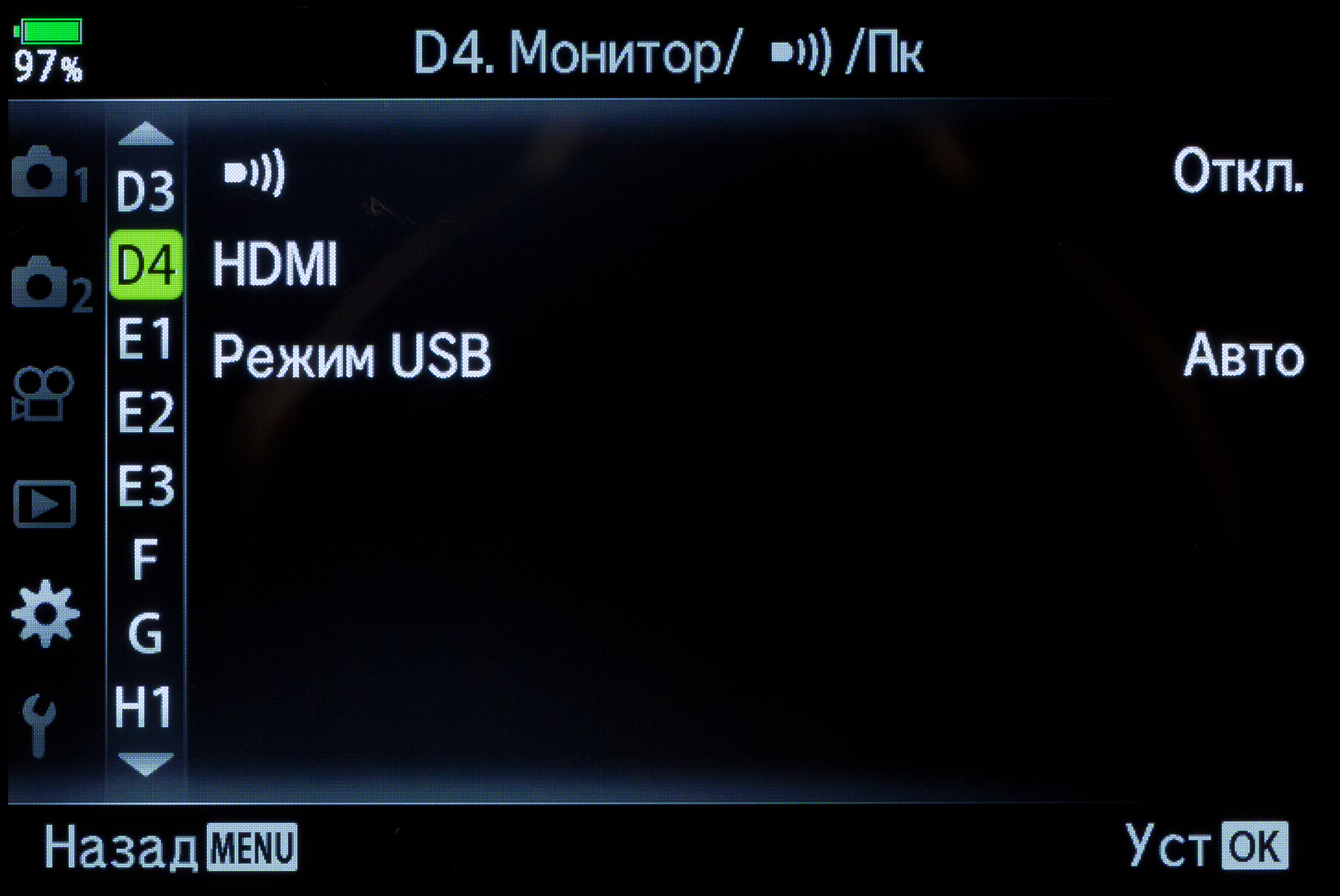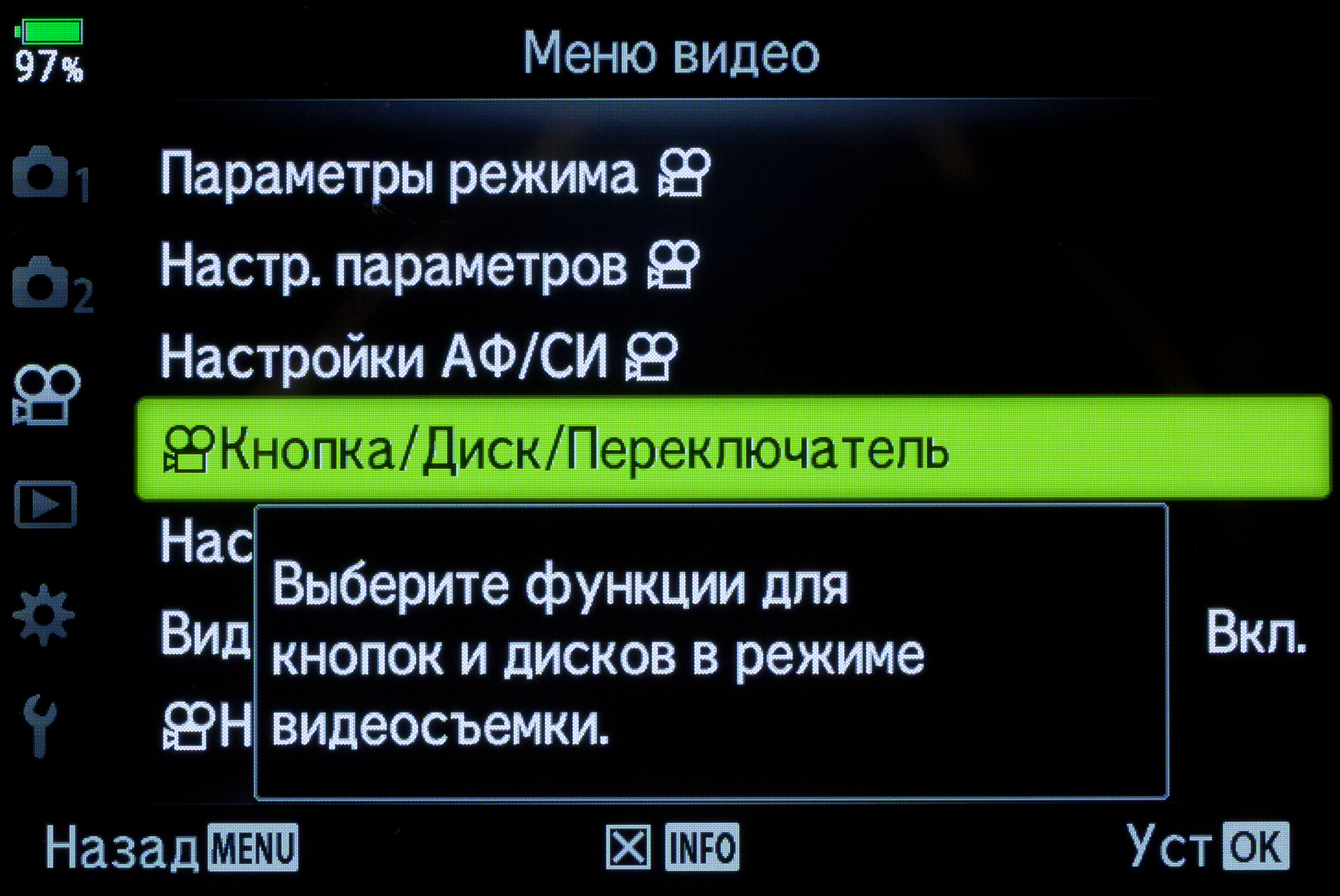 Блоки опций собраны в группы: фотосъемка 1/2, съемка видео, просмотр, пользовательское меню и настройки. Далее следует ветвление меню до второго, а иногда — третьего, четвертого (и далее) порядков вложения. Каждый пункт снабжен разъяснением-подсказкой. Мы не станем подробно описывать устройство и работу с меню, так как это выходит за рамки нашего материала и, кроме того, весьма подробно описано в руководстве пользователя (его можно скачать с официального сайта производителя). Приведем лишь наиболее важные скриншоты.