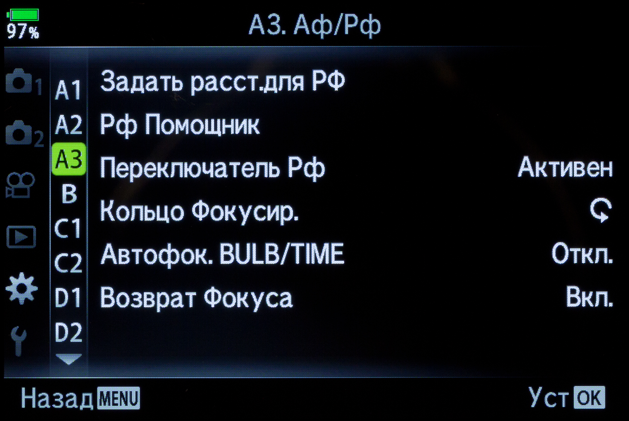 Под большой палец правой руки хорошо ложится кнопка экспопамяти и принудительной фокусировки (в зависимости от положения рычажка вокруг нее). Им же нетрудно дотянуться до пятипозиционного переключателя. Отдельного джойстика для выбора зоны фокусировки нет, но и навипад справляется с этим неплохо.
