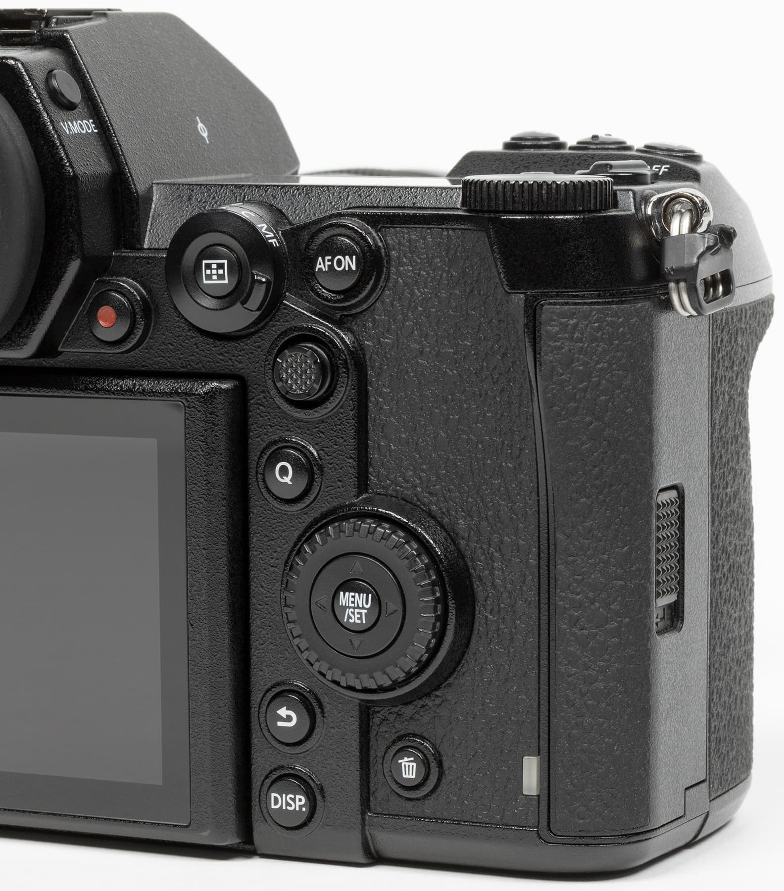 Сзади тоже заметны типичные принципы компоновки современных беззеркальных камер: дисплей, окуляр видоискателя и изобилие кнопок управления.