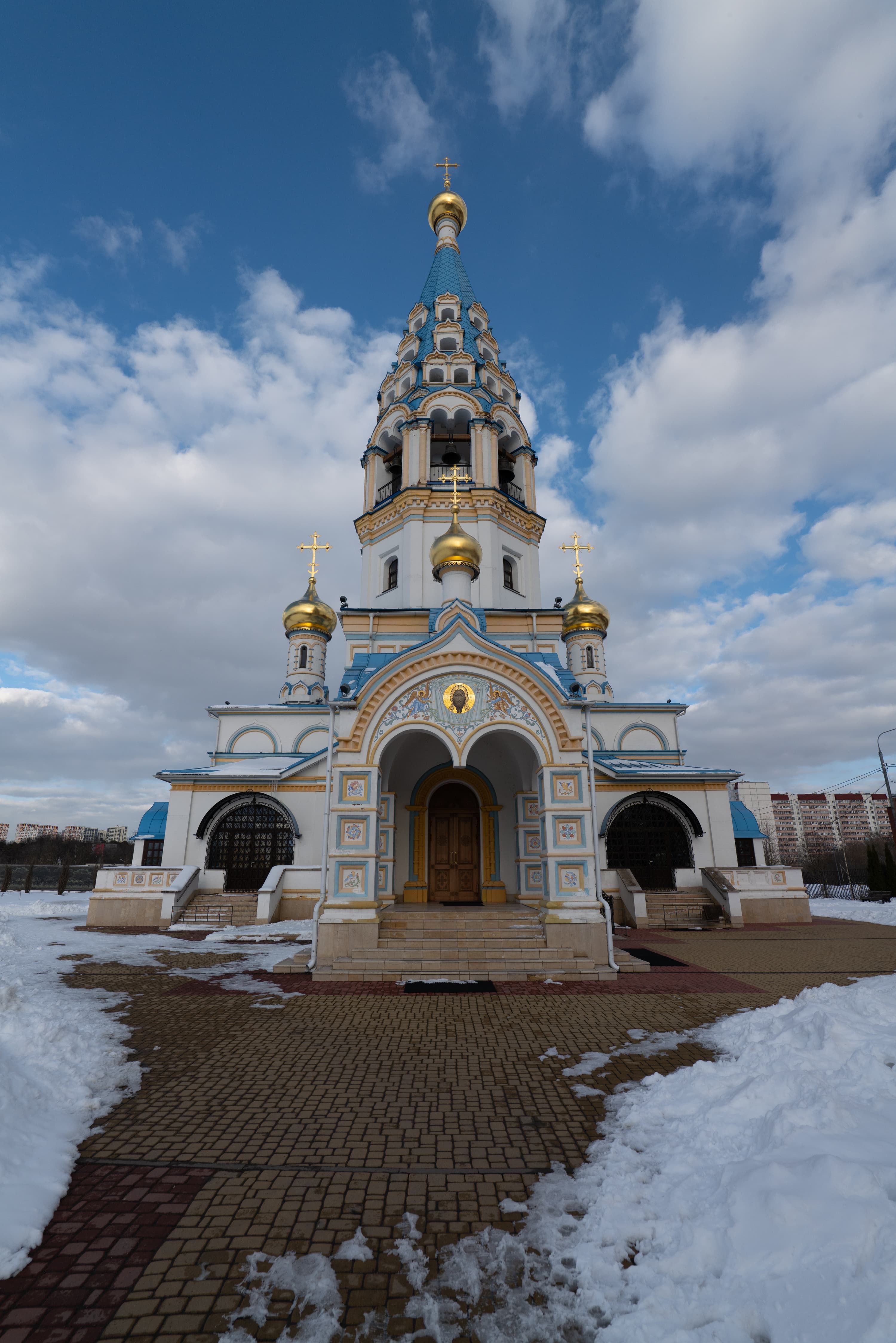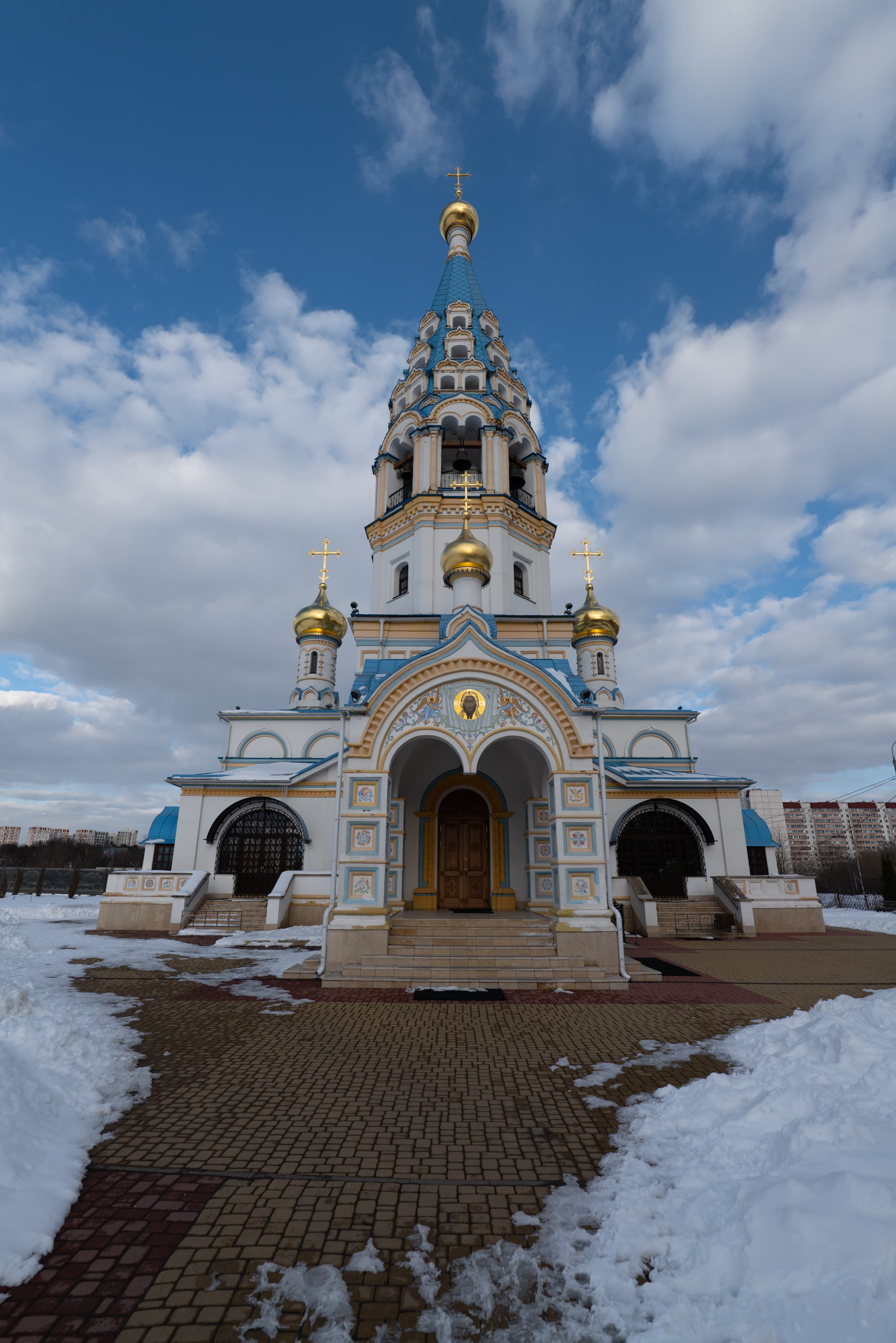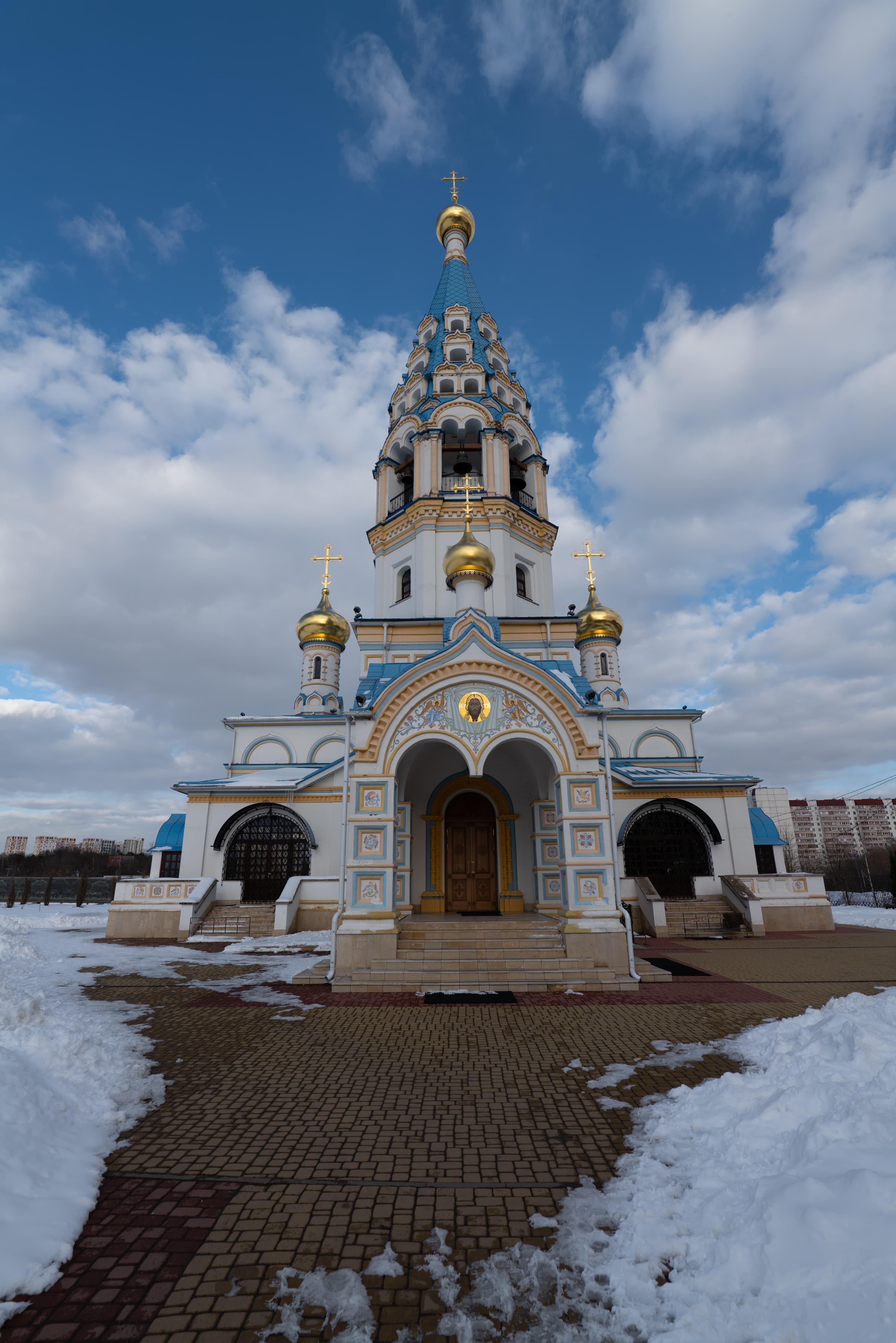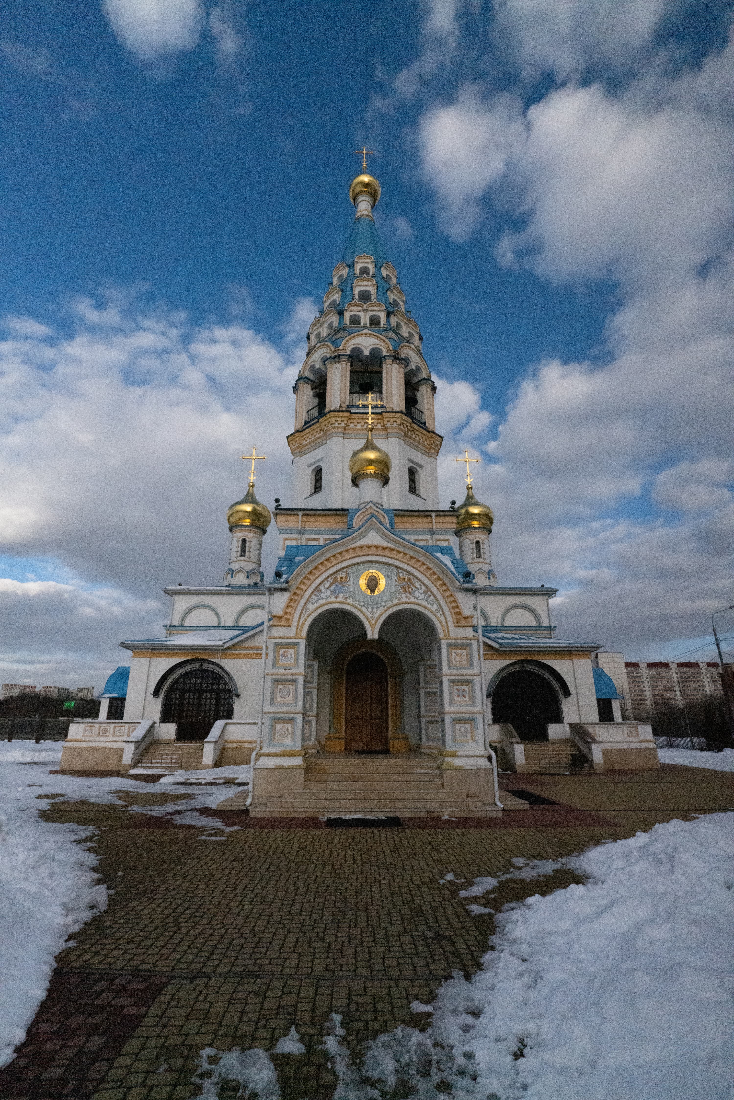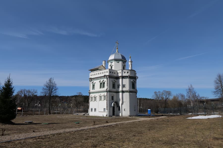 Для субъективной оценки переносимости высоких значений эквивалентной светочувствительности мы снимали храм Иконы Божией Матери «Неувядаемый цвет» в Рублево, повышая ISO на одну ступень от кадра к кадру. Приведем сначала полновесные JPEG из камеры без постобработки, а затем — фрагменты этих же снимков в масштабе 1:1.