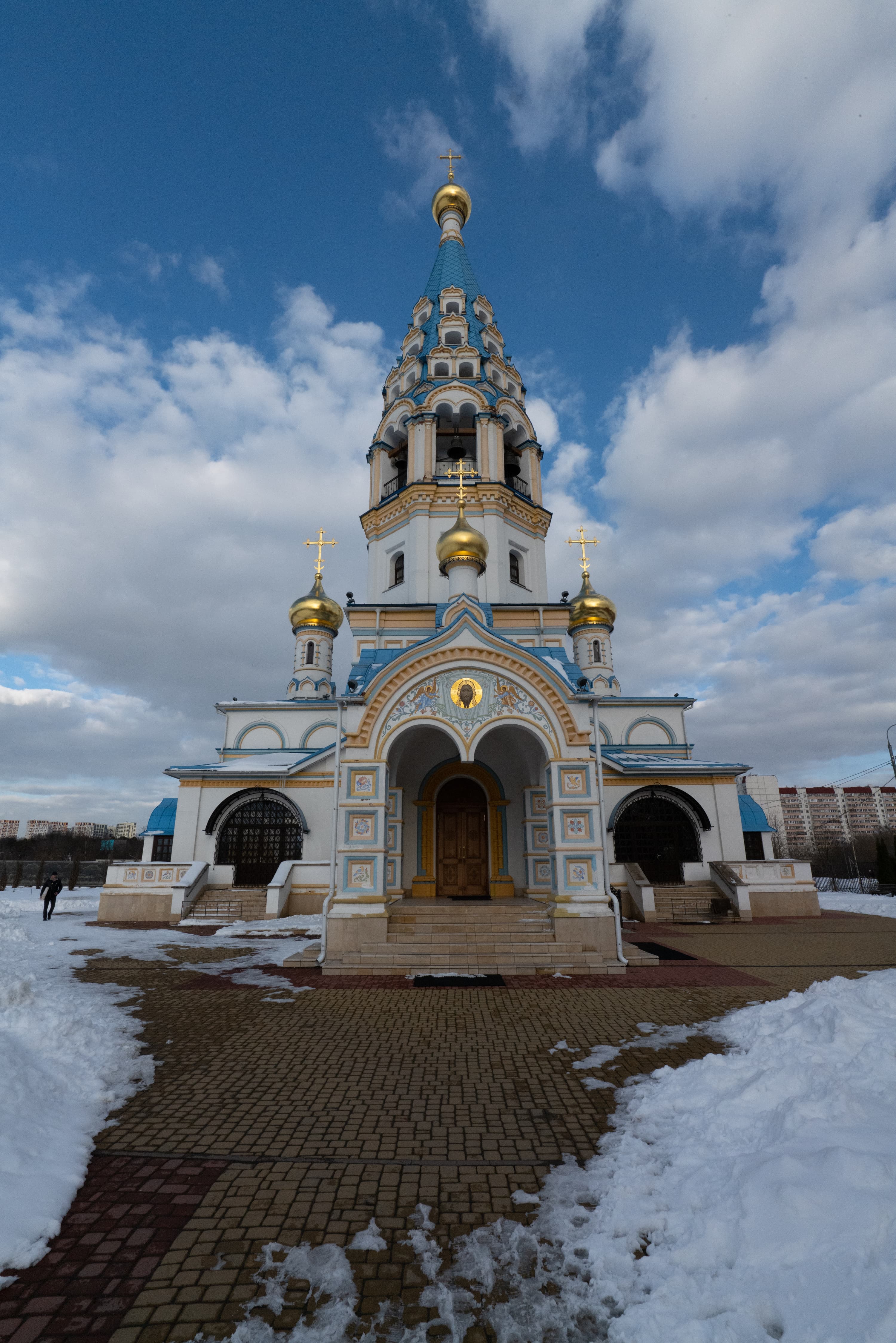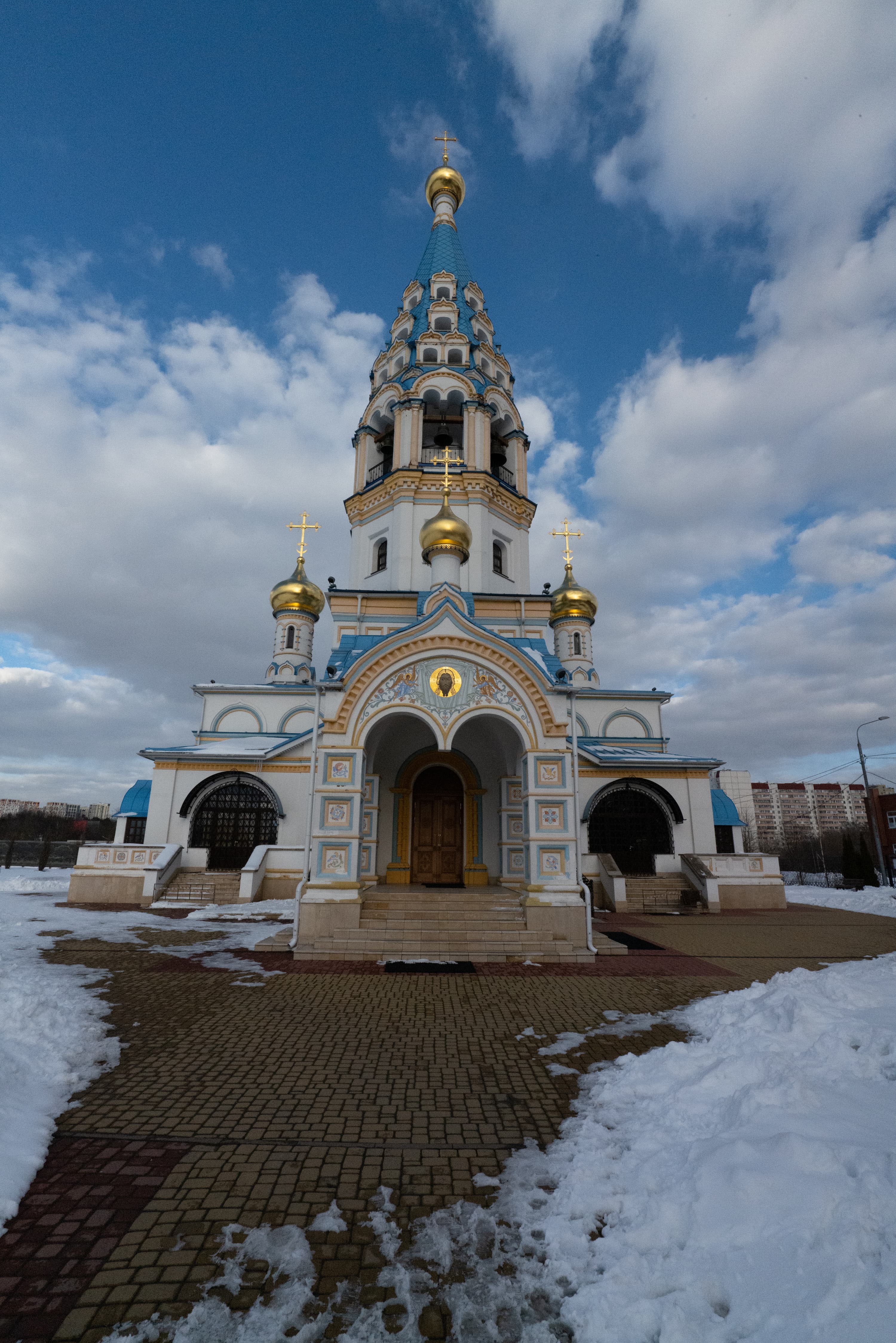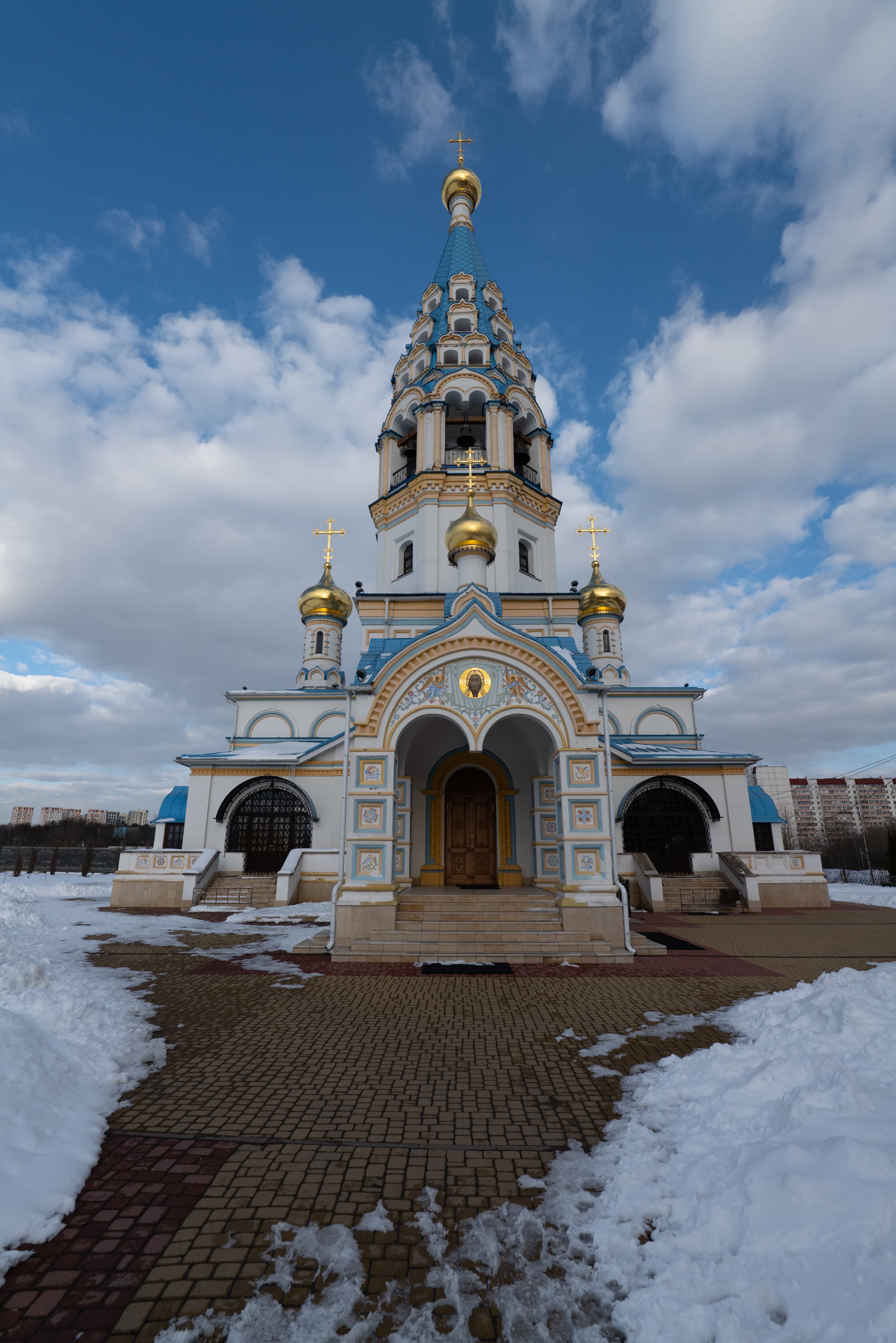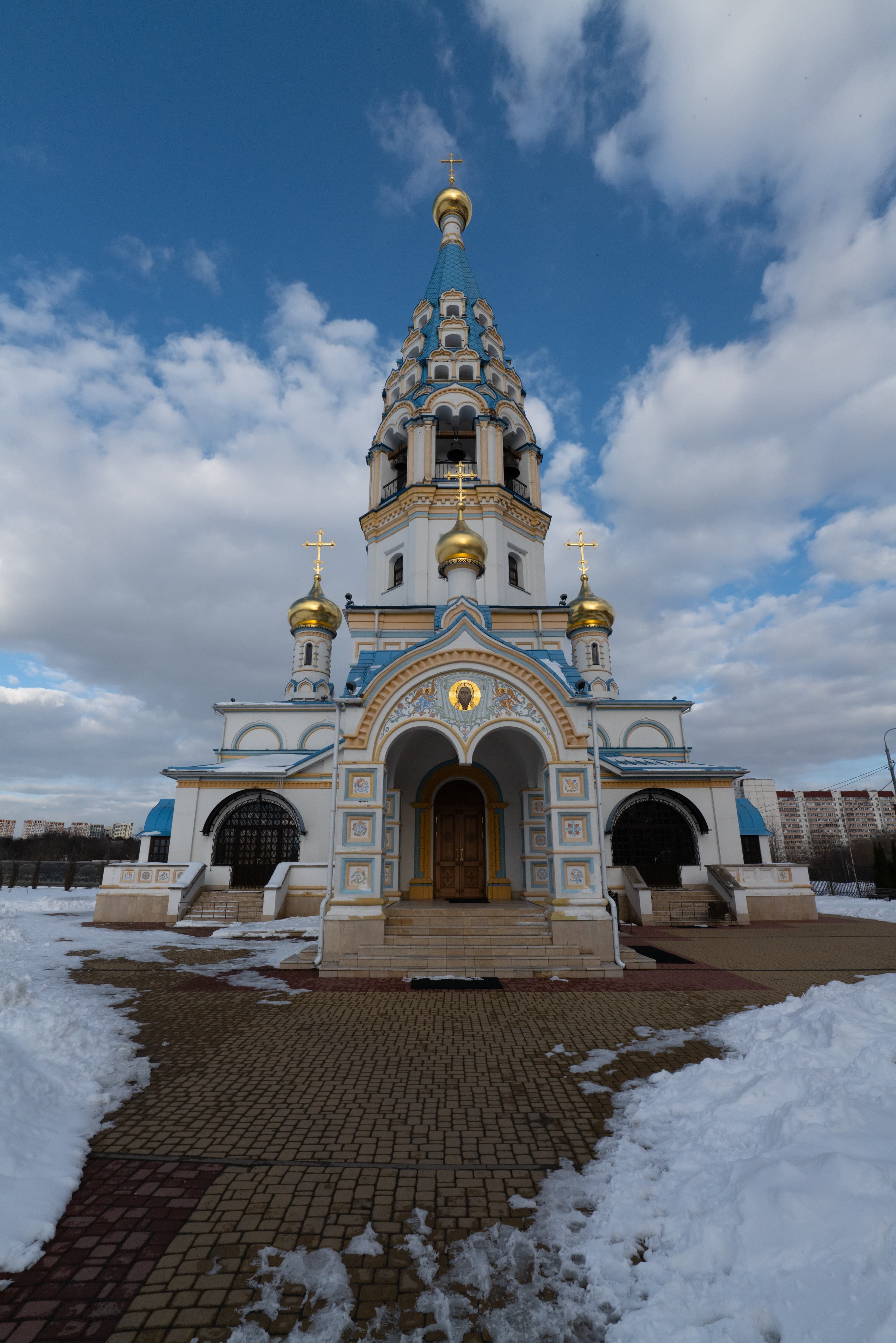 Для субъективной оценки переносимости высоких значений эквивалентной светочувствительности мы снимали храм Иконы Божией Матери «Неувядаемый цвет» в Рублево, повышая ISO на одну ступень от кадра к кадру. Приведем сначала полновесные JPEG из камеры без постобработки, а затем — фрагменты этих же снимков в масштабе 1:1.