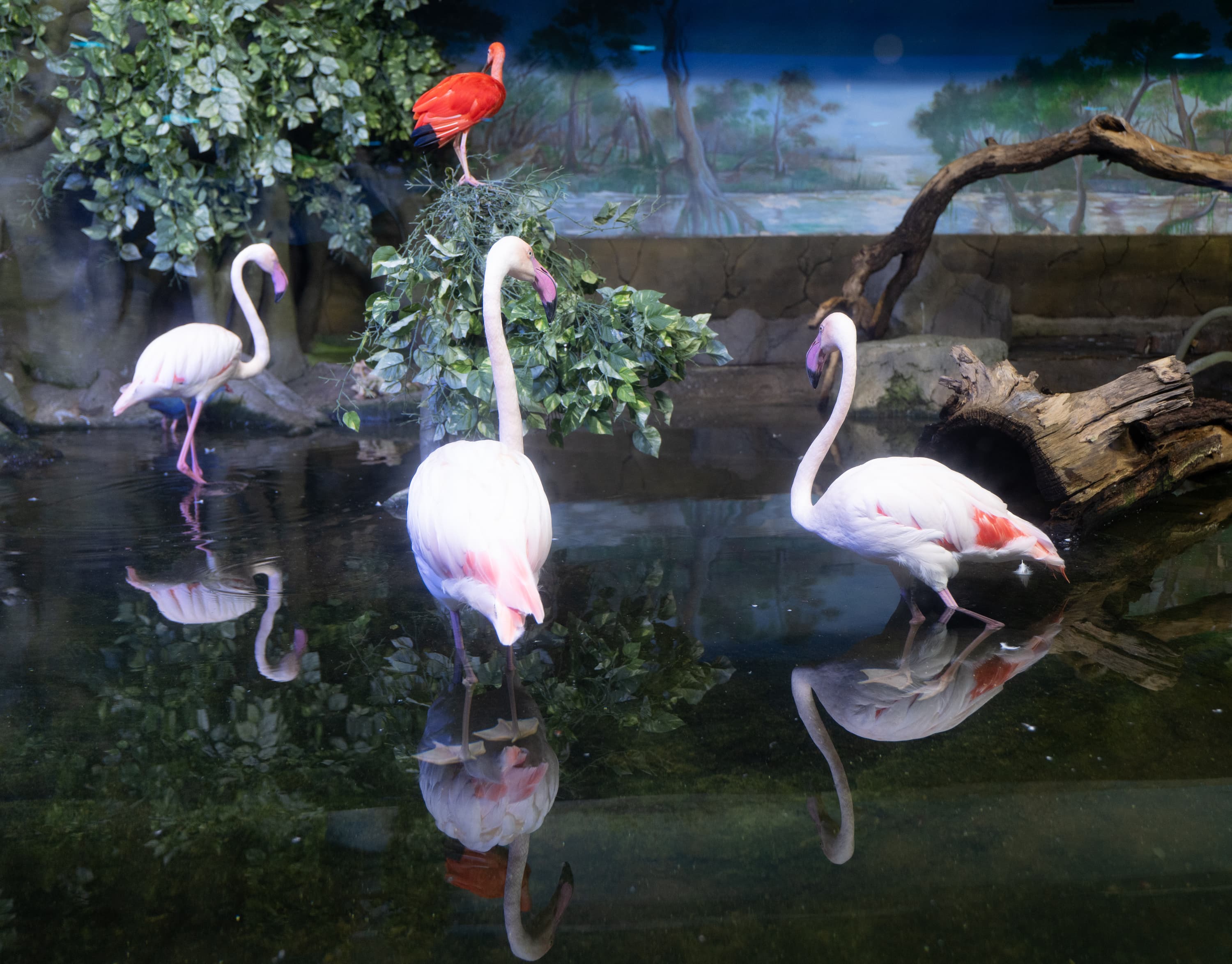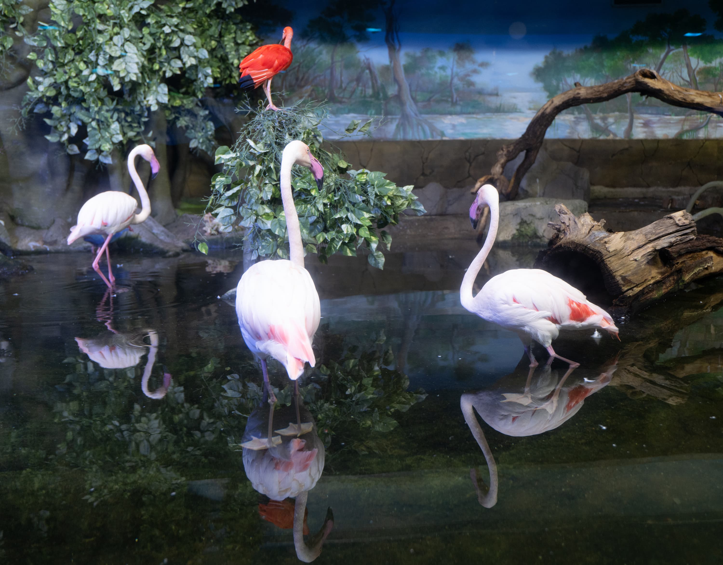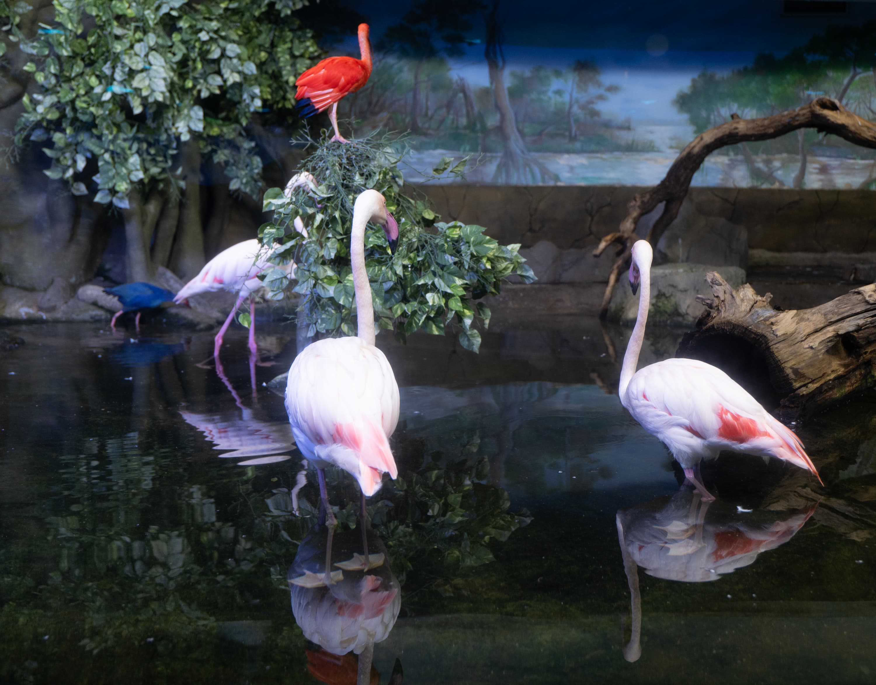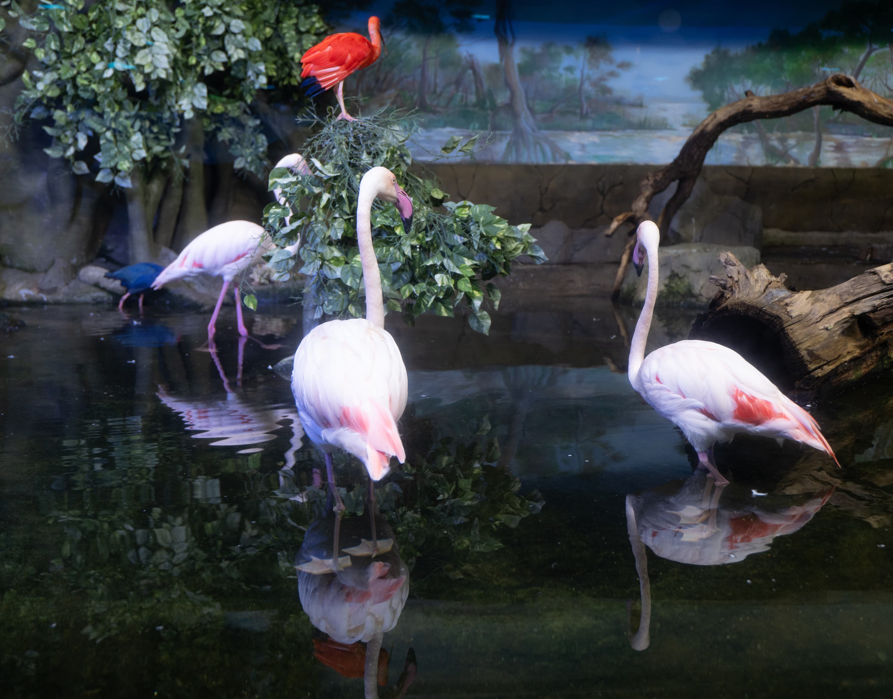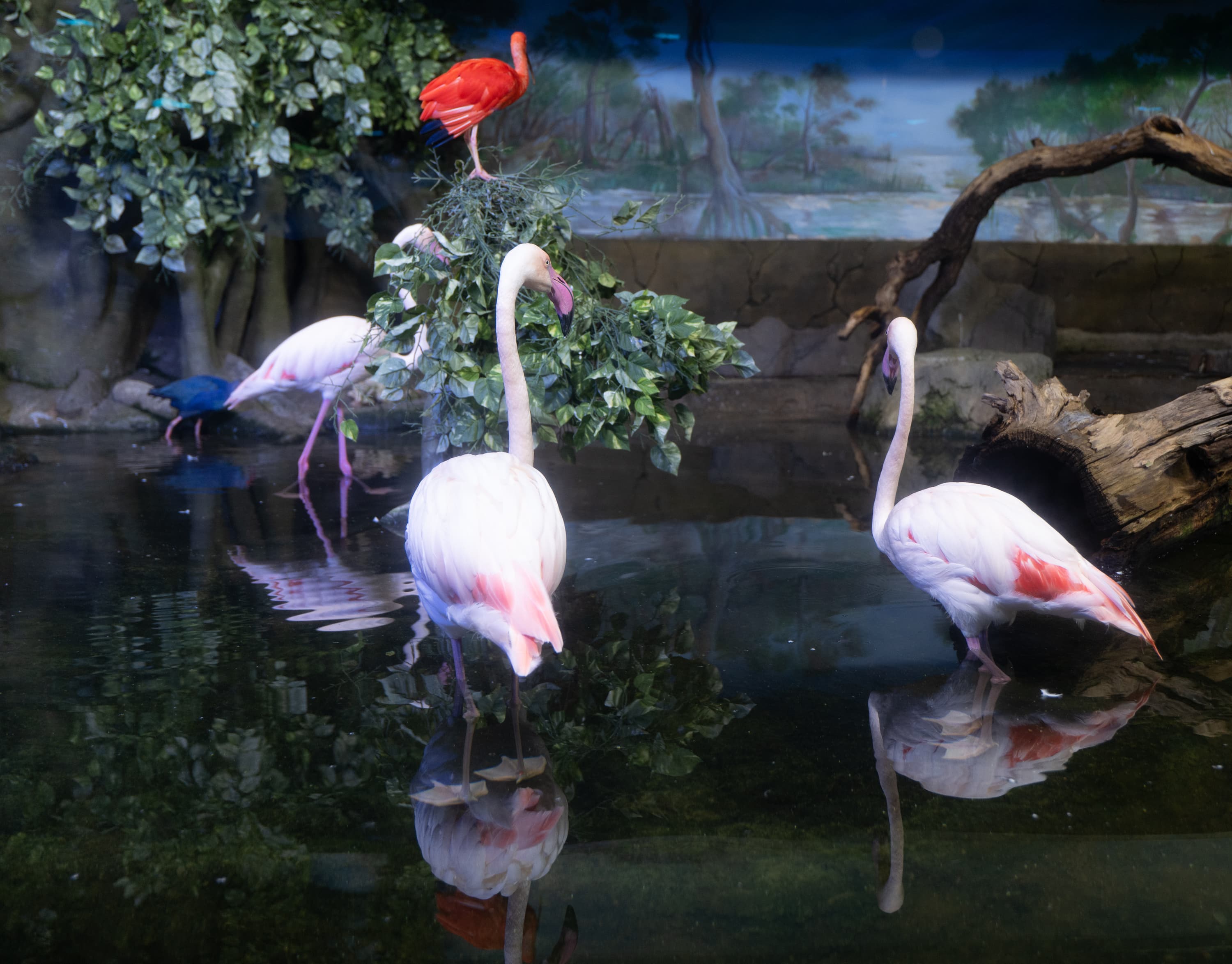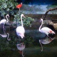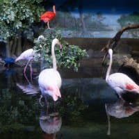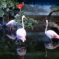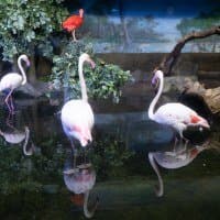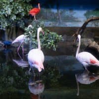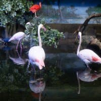 В однокадровом режиме АФ работает достаточно быстро и точно. Четыре фото, приведенные ниже, мы снимали с перекадрированием и повторной перефокусировкой по глазам фламинго справа в режиме однокадрового АФ (AF-S) с неизменными параметрами экспозиционной триады: F2,8; 1/100 c; ISO 1000.