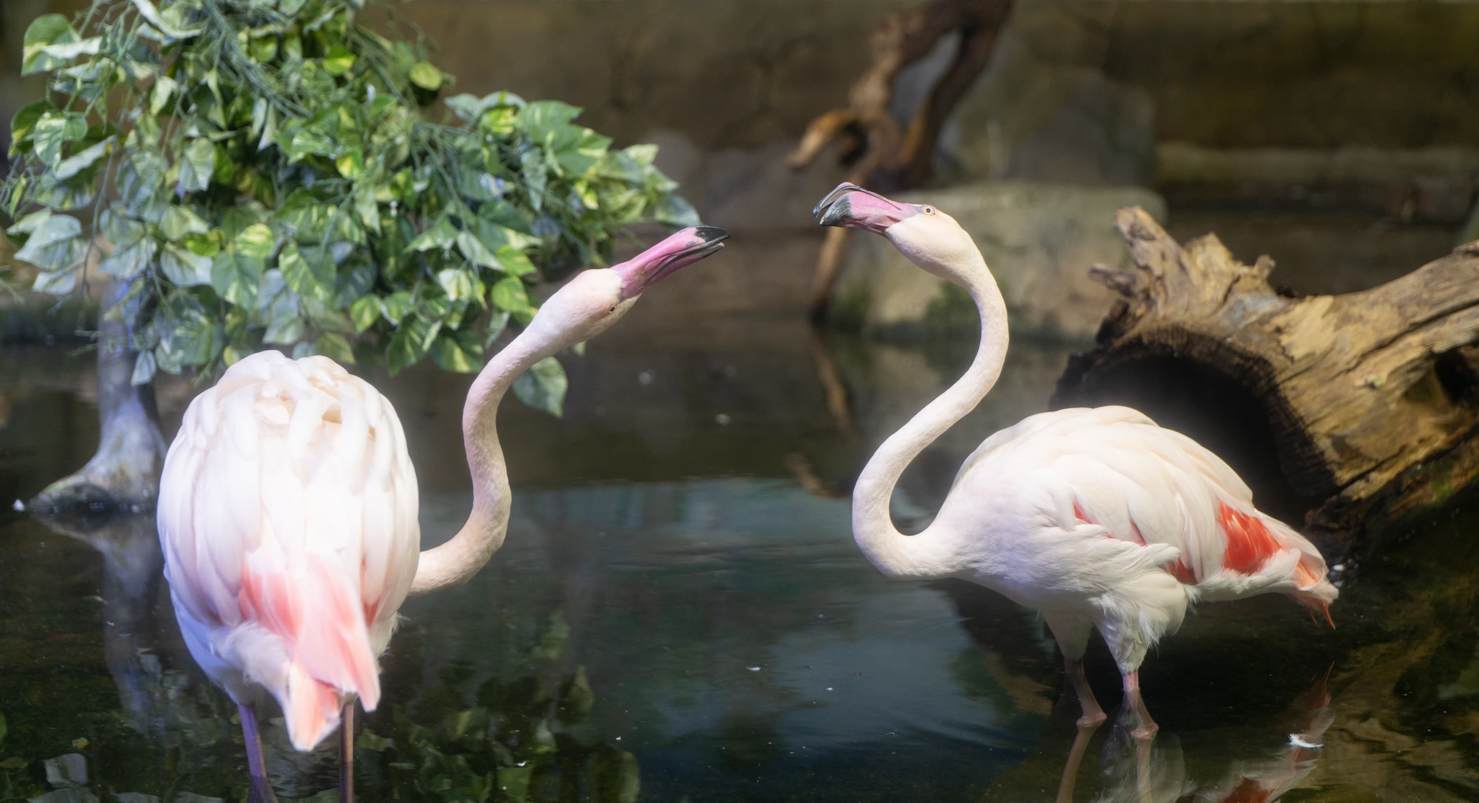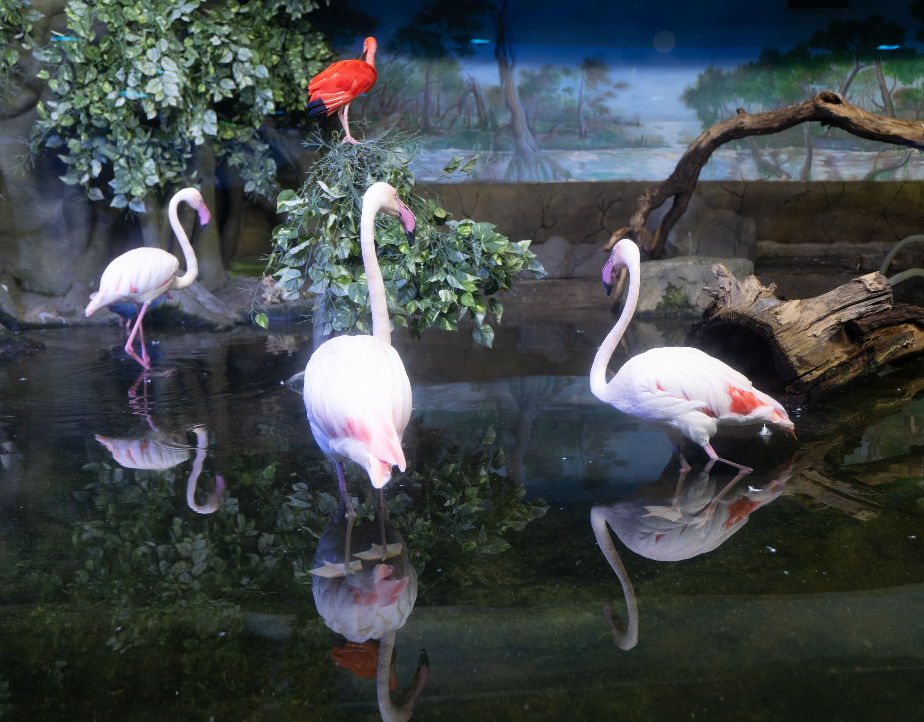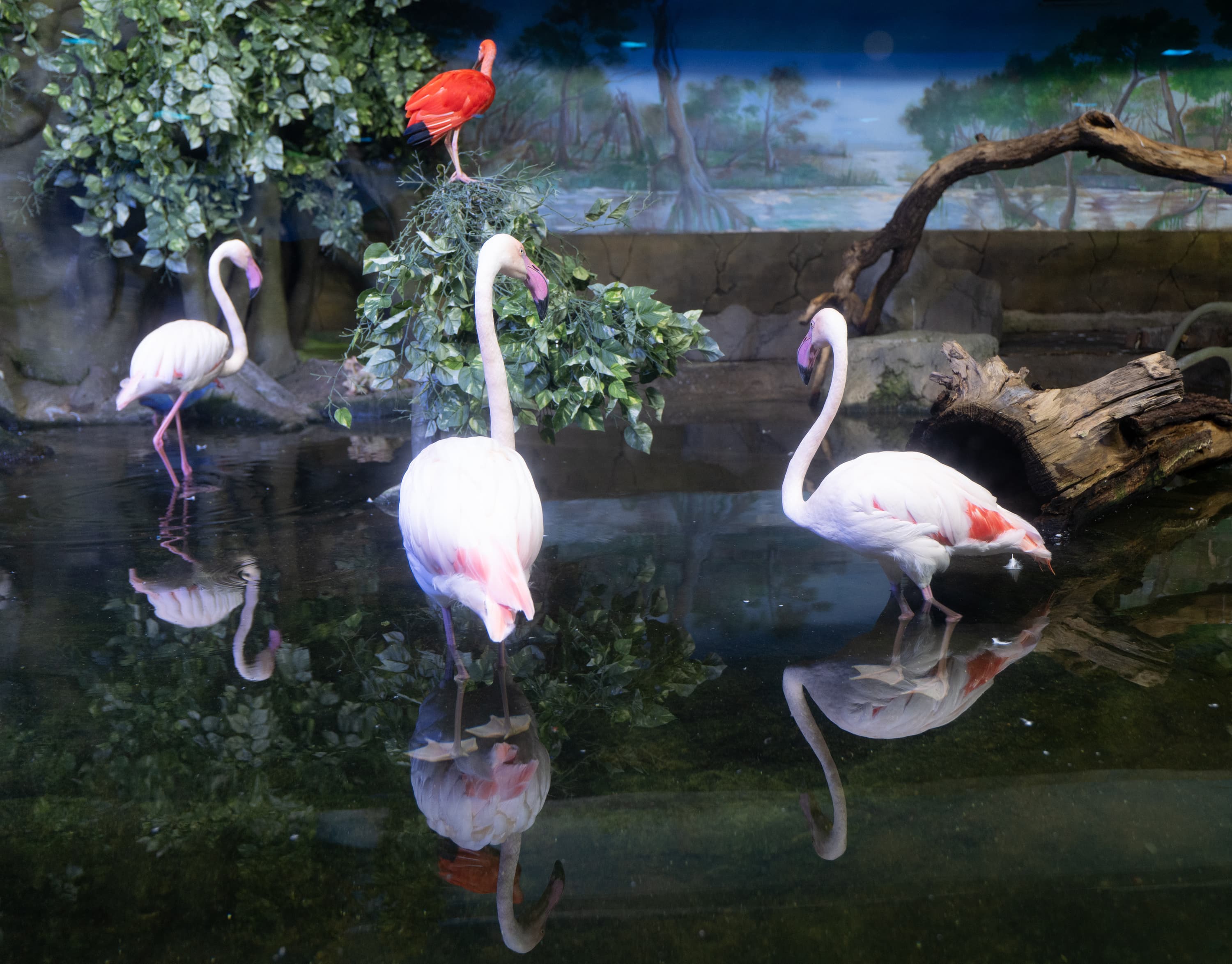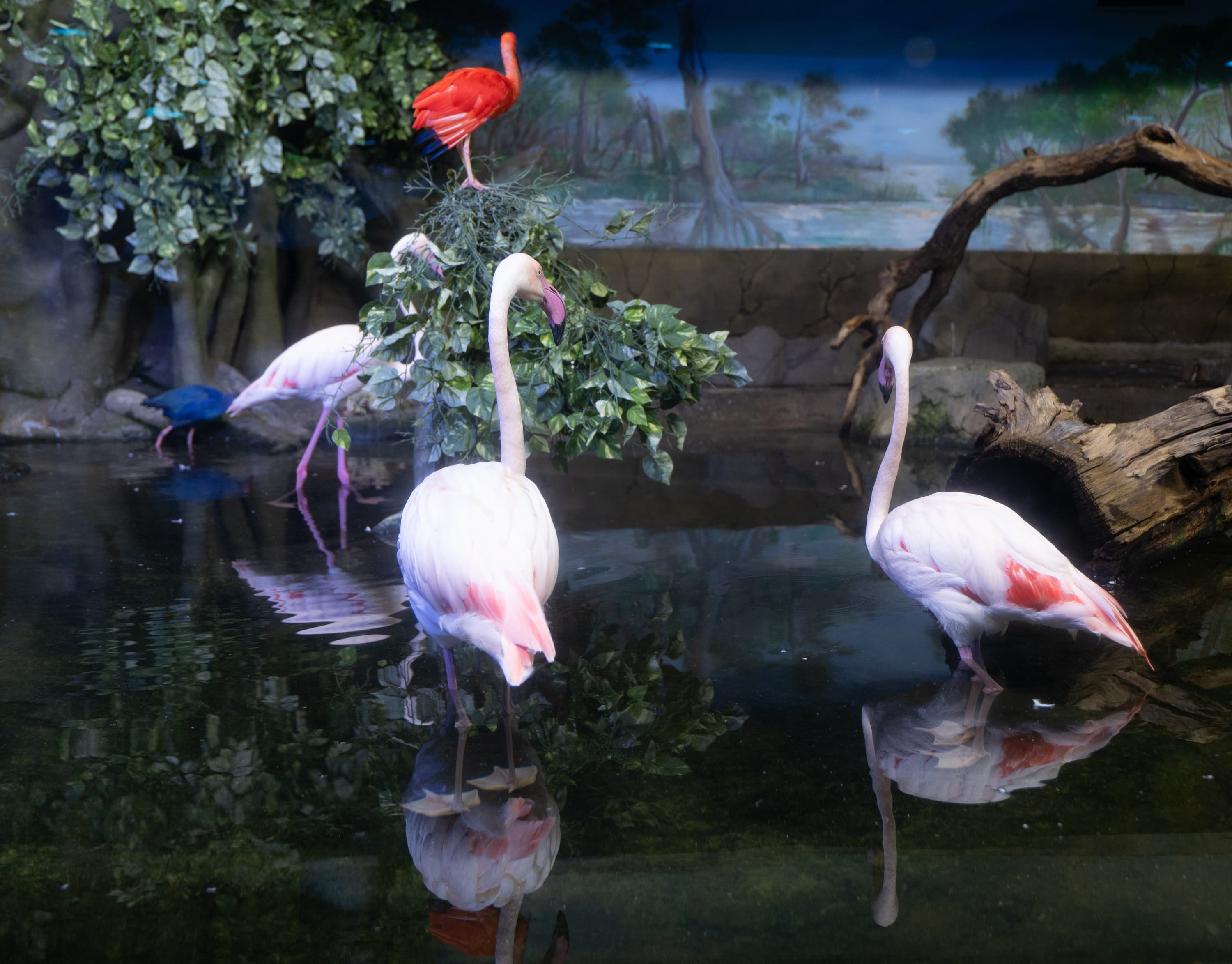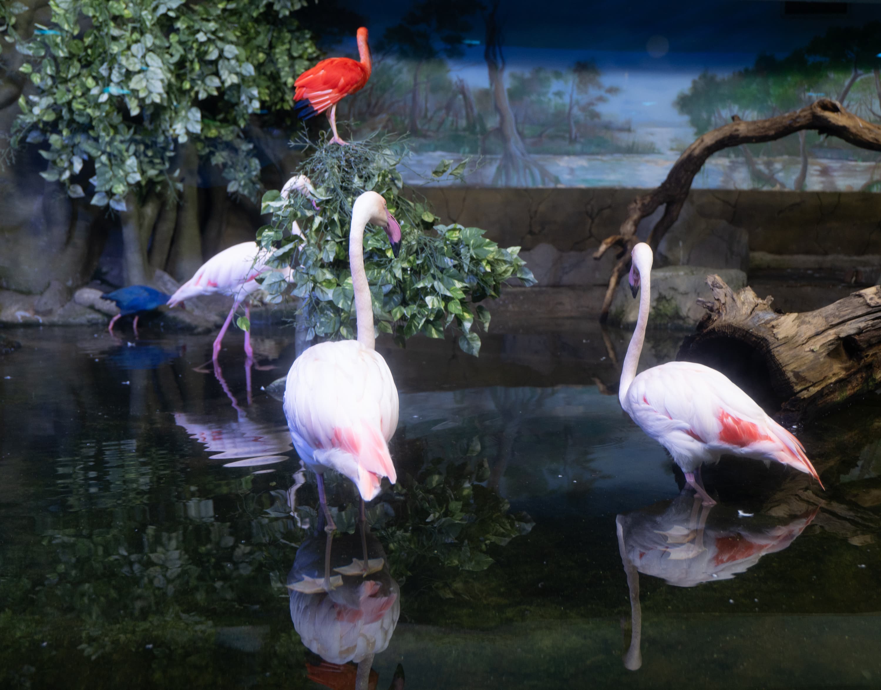 В однокадровом режиме АФ работает достаточно быстро и точно. Четыре фото, приведенные ниже, мы снимали с перекадрированием и повторной перефокусировкой по глазам фламинго справа в режиме однокадрового АФ (AF-S) с неизменными параметрами экспозиционной триады: F2,8; 1/100 c; ISO 1000.