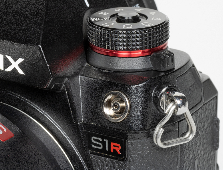 Справа под колесом главного селектора режимов съемки находится коаксиальный разъем синхронизации с внешними источниками импульсного освещения. Он встречается только в профессиональных камерах.