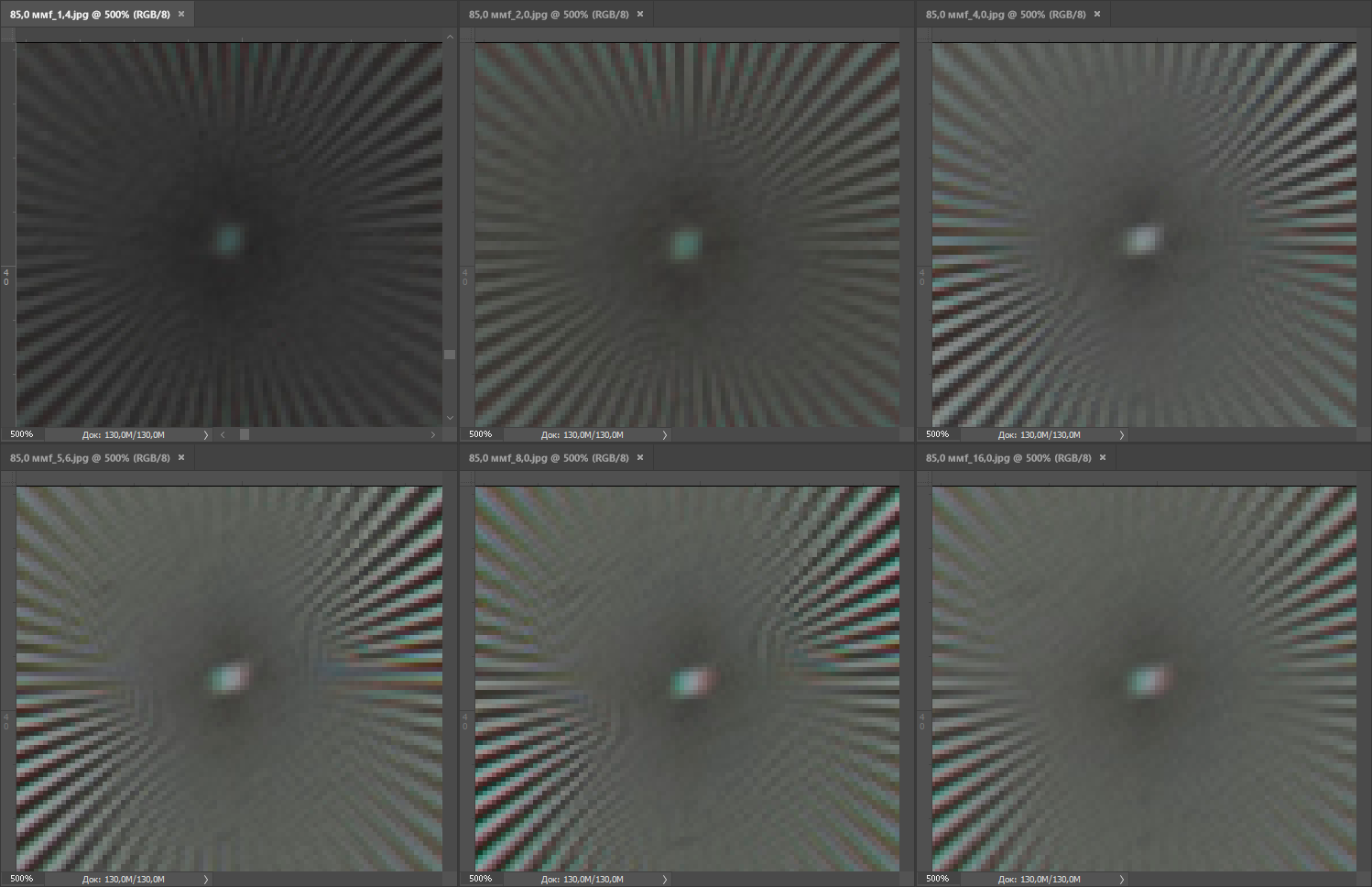 | На всех скриншотах верхний ряд: f/1,4 — f/2,0 — f/4,0, нижний ряд: f/5,6 — f/8,0 — f/16 | |||