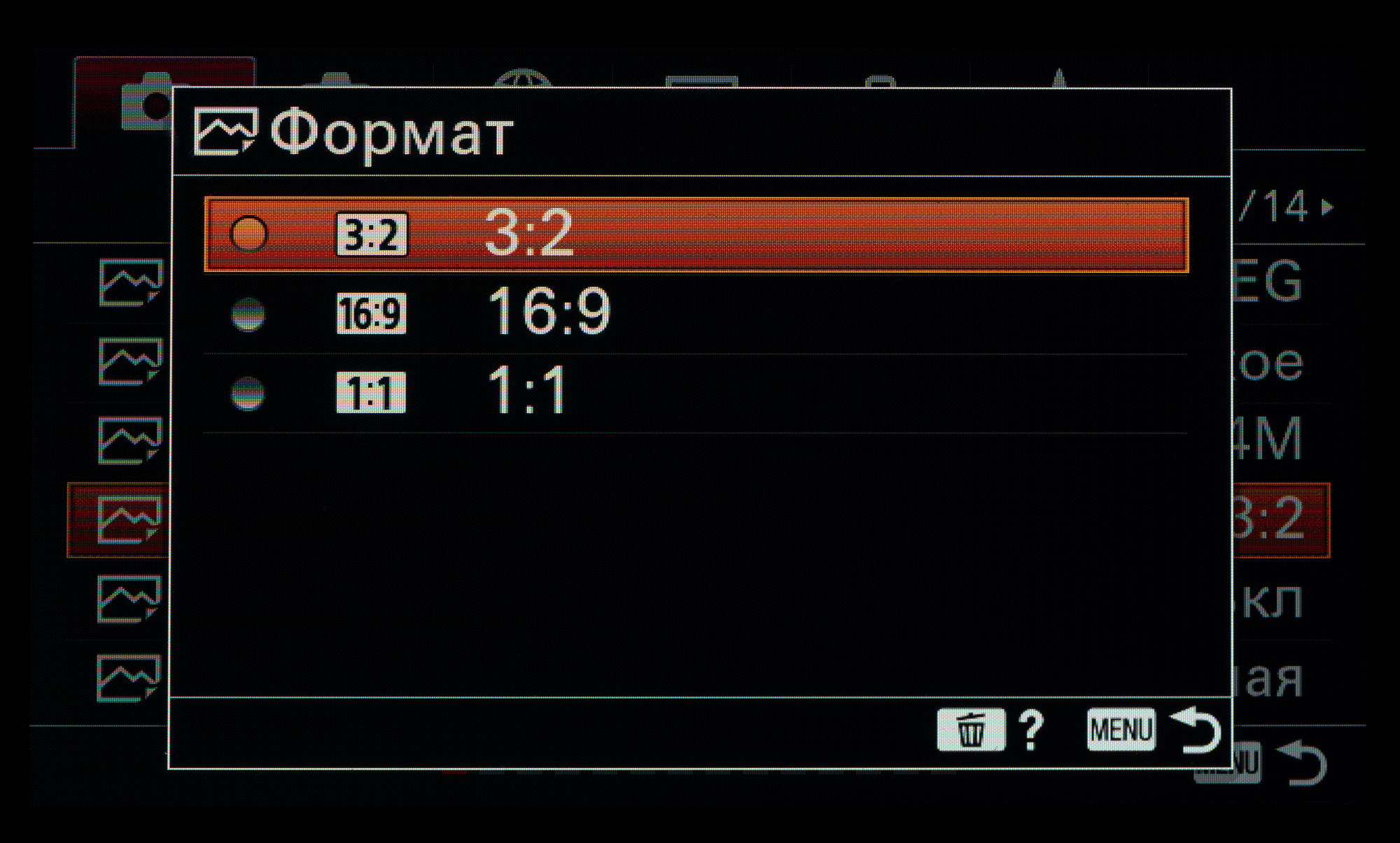 | Формат записи фотоснимков | JPEG (Exif Ver.2.31), RAW (14 бит ARW 2.3 со сжатием и без сжатия) 3:2: 6000×4000 (24 Мп), 4240×2832 (12 Мп), 3008×2000 (6 Мп); 16:9: 6000×3376 (20 Мп), 4240×2400 (10 Мп), 3008×1688 (5,1 Мп); 1:1: 4000×4000 (16 Мп), 2832×2832 (8 Мп), 2000×2000 (4 Мп) |