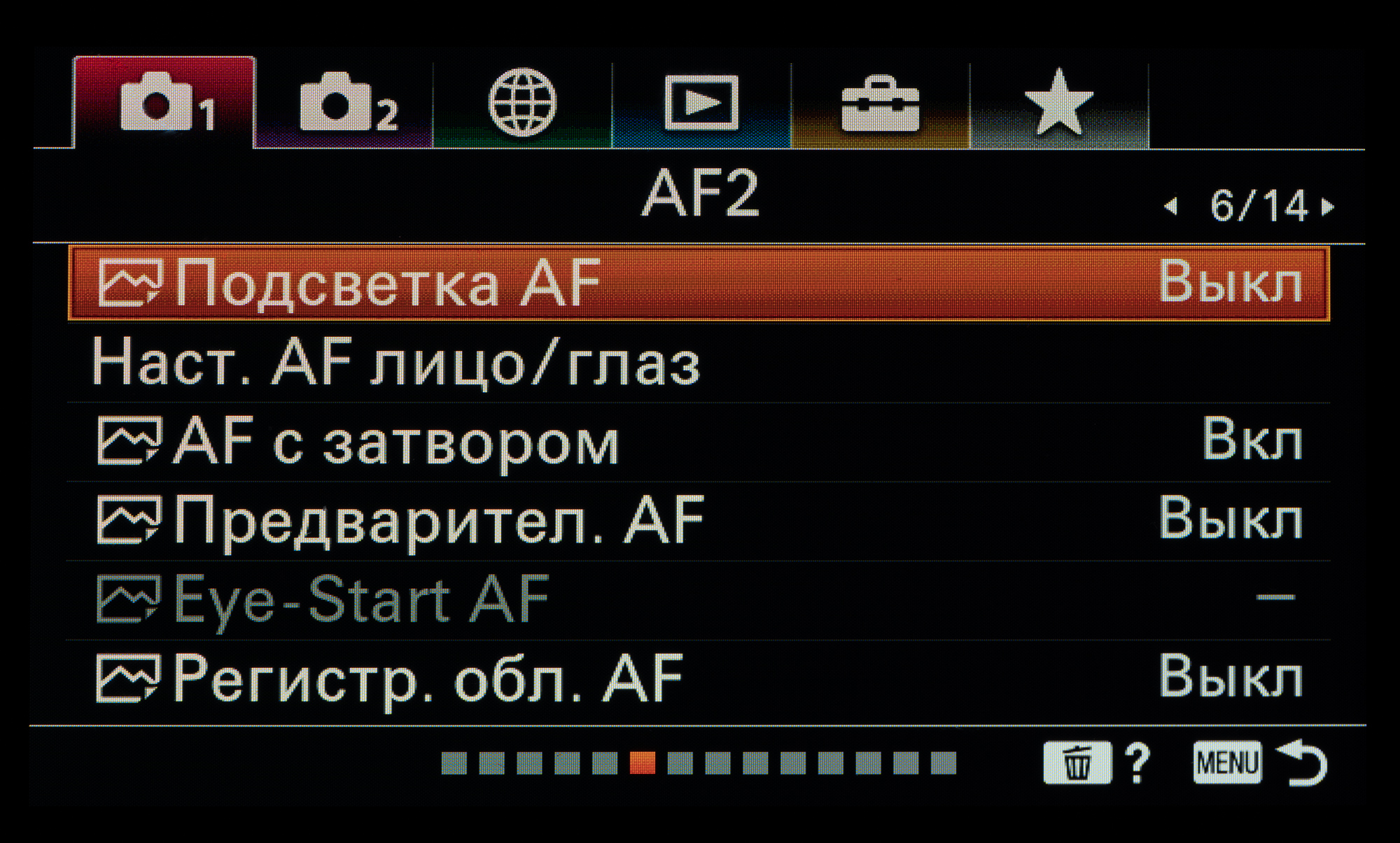| Области АФ | широкая (задействованы все фазовые и контрастные детекторы), зональная, центральная, универсальная точечная, расширенная точечная, фиксирующая (широкая, зональная, центральная, универсальная точечная), расширенная точечная |