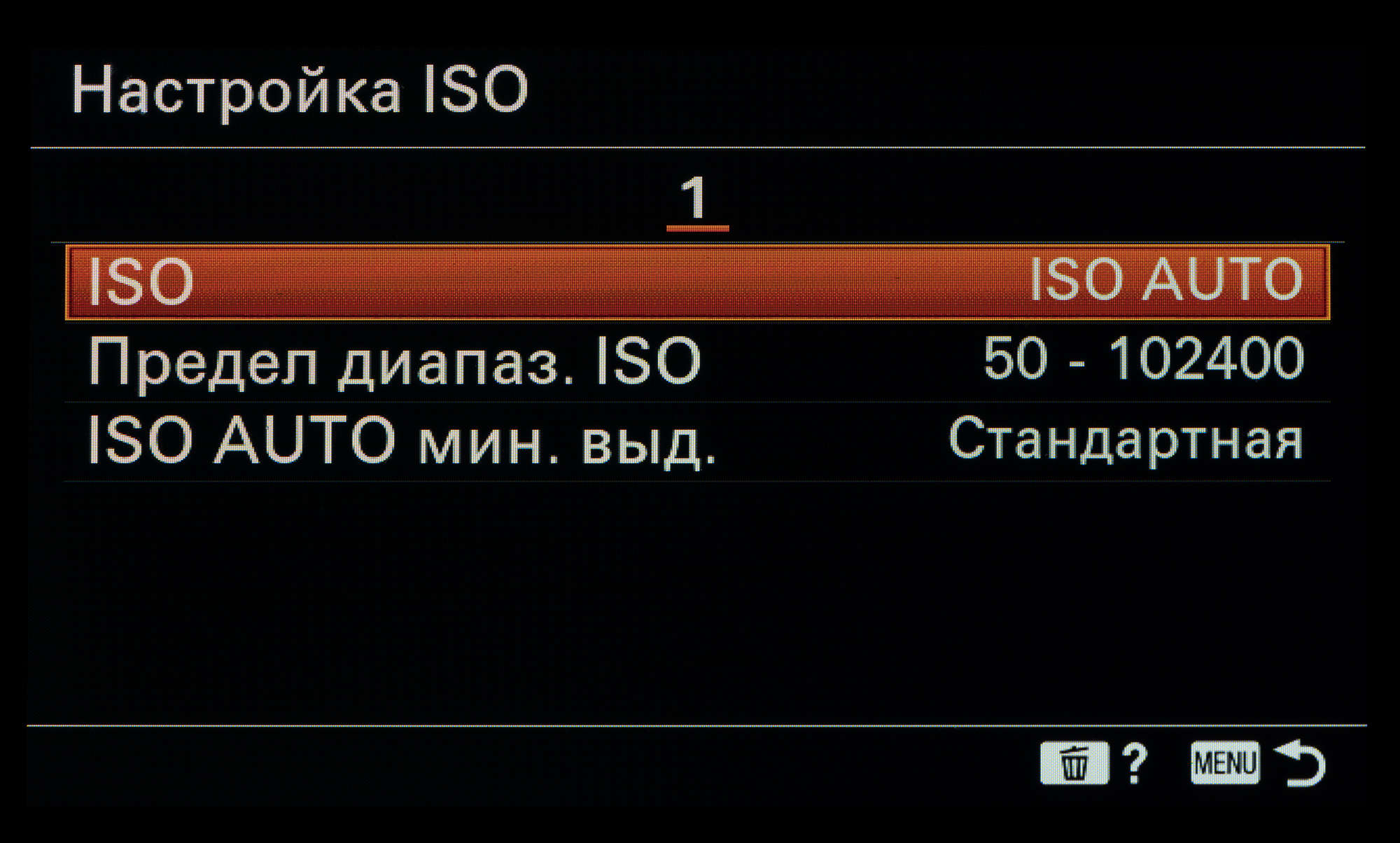 - Рабочие ISO 100—32000, расширенные — ISO 50—102400