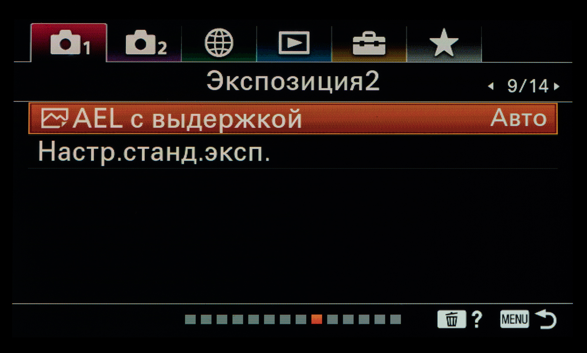 | Автоэкспонометрия | датчик Exmor R CMOS; 1200 зон; светочувствительность от −2 до +20 EV1; усредненная по кадру, центровзвешенная, точечная, по наиболее яркой зоне в кадре |