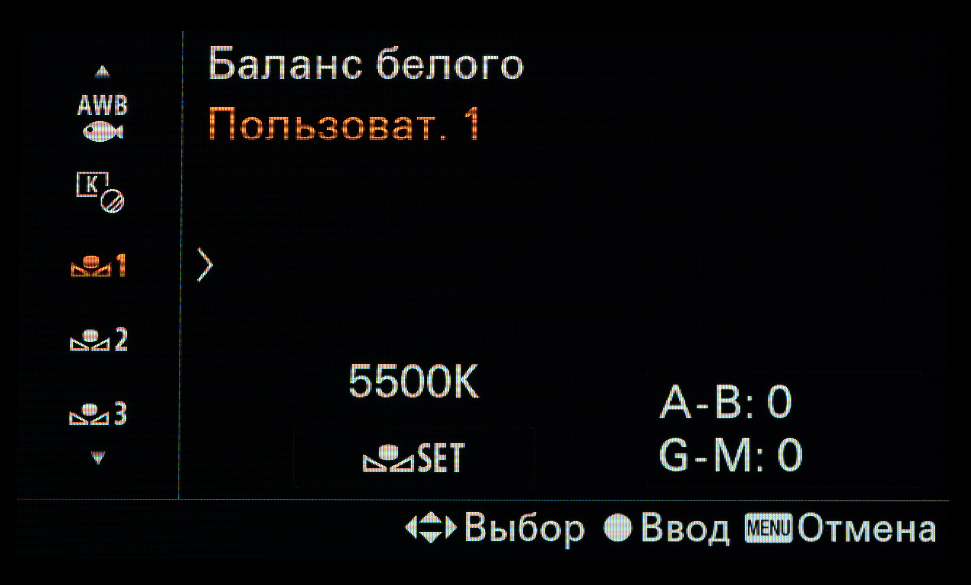 | Баланс белого | авто, дневной свет, тень, облачно, лампы накаливания, люминесцентное освещение (теплый/холодный/дневной белый, дневной свет), вспышка, под водой, прямая установка цветовой температуры (2500—9900 К) и цветовой фильтр G7—M7 (57 ступеней), A7—B7 (29 ступеней), пользовательский режим |
