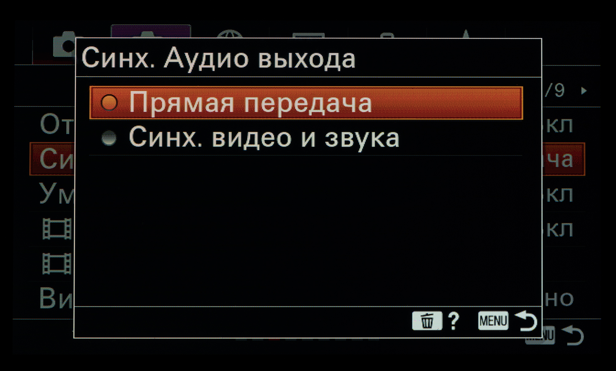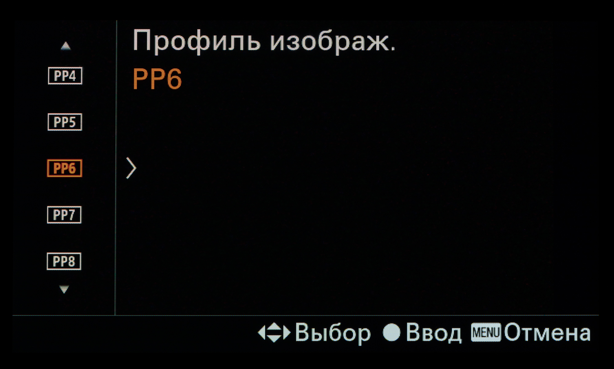 | Параметры изображения | уровень черного, гамма (видео, фото, 4 настройки для кино, ITU709, ITU709 (800%), S-Log2, S-Log3, HLG, HLG1-3), гамма черного, кривая гаммы, режим цвета, насыщенность, фаза цвета, глубина цвета, детали |