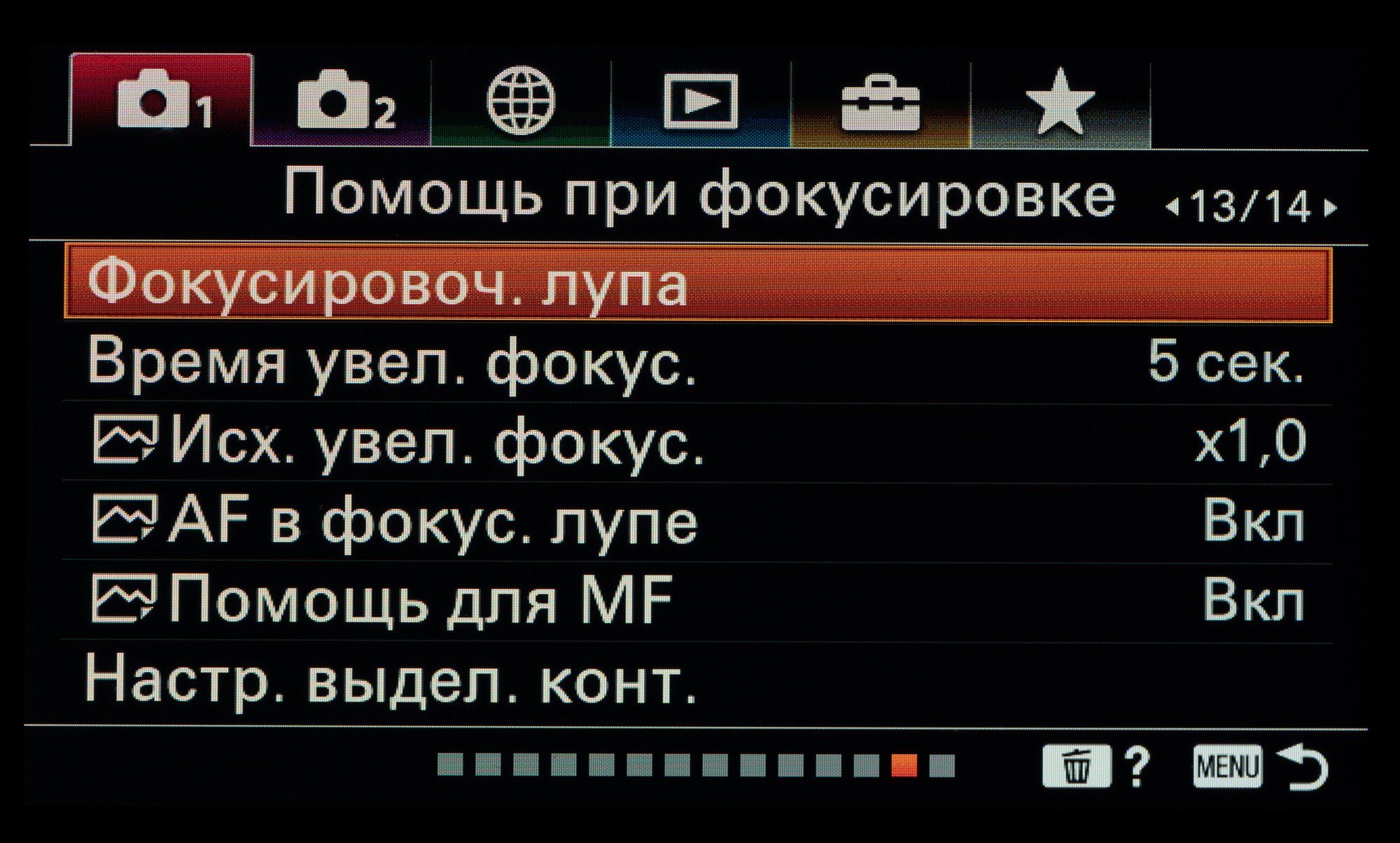 | Автоматическая фокусировка (АФ) | гибридная фазовая (425 зон) и контрастная (425 зон); диапазон чувствительности от −1 до +20 EV |