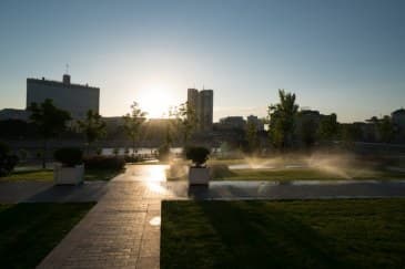 Вот еще, тоже при достаточно высоком контрасте сцены. Это сквер у гостиницы «Radisson Украина».